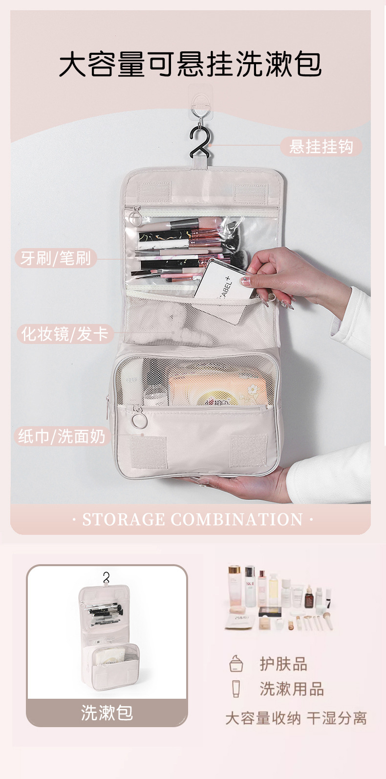 • 베이지 색 여행 보관 가방 10 세트 [더블 백 화장품 가방 후크 세탁 가방]]