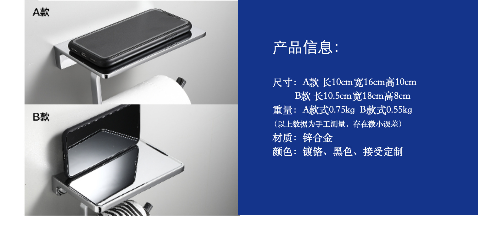 호텔 크롬 도금 라이트 아연 합금 티슈 랙 화장실 스토리지 플랫폼 랙 양자 화장실 종이 롤 랙
