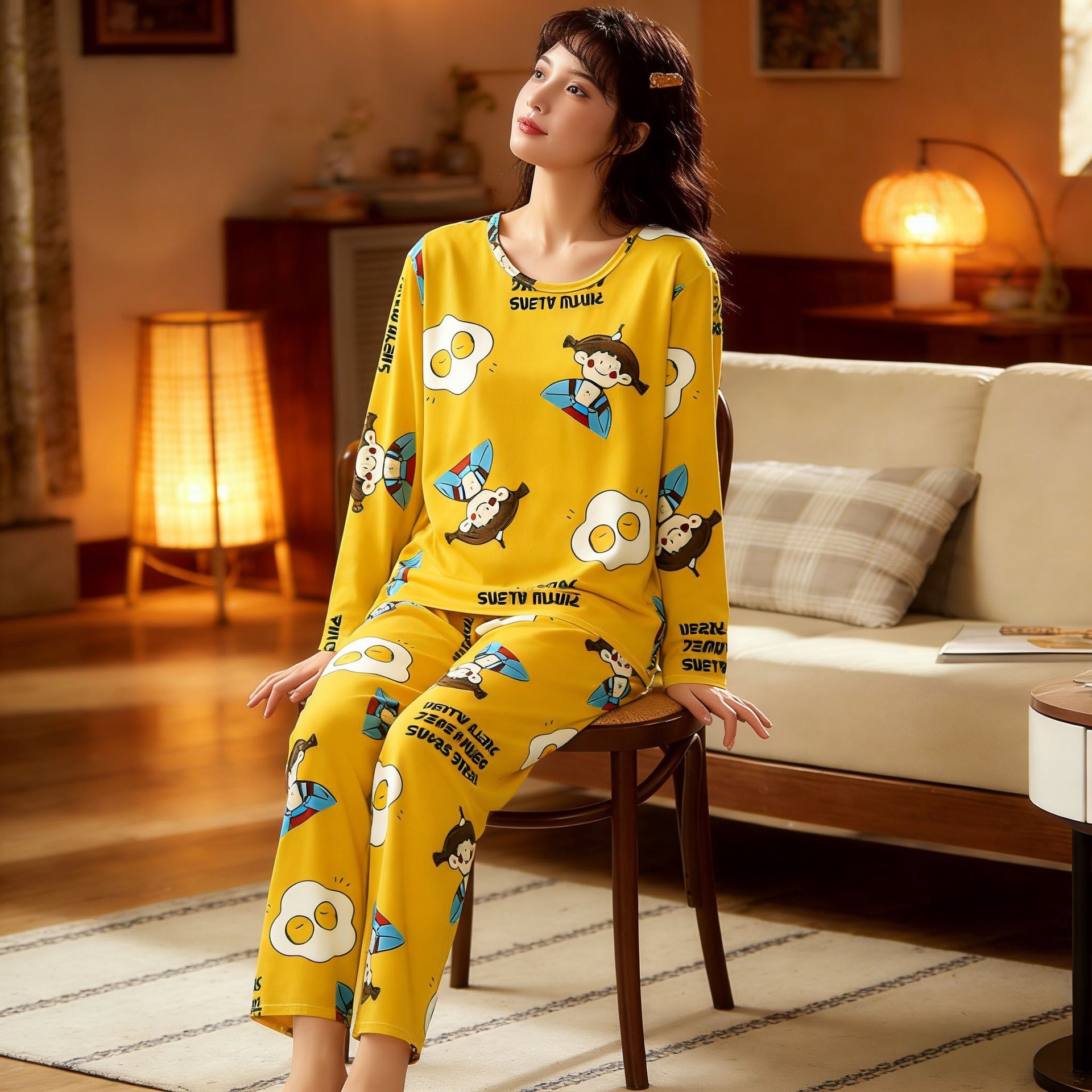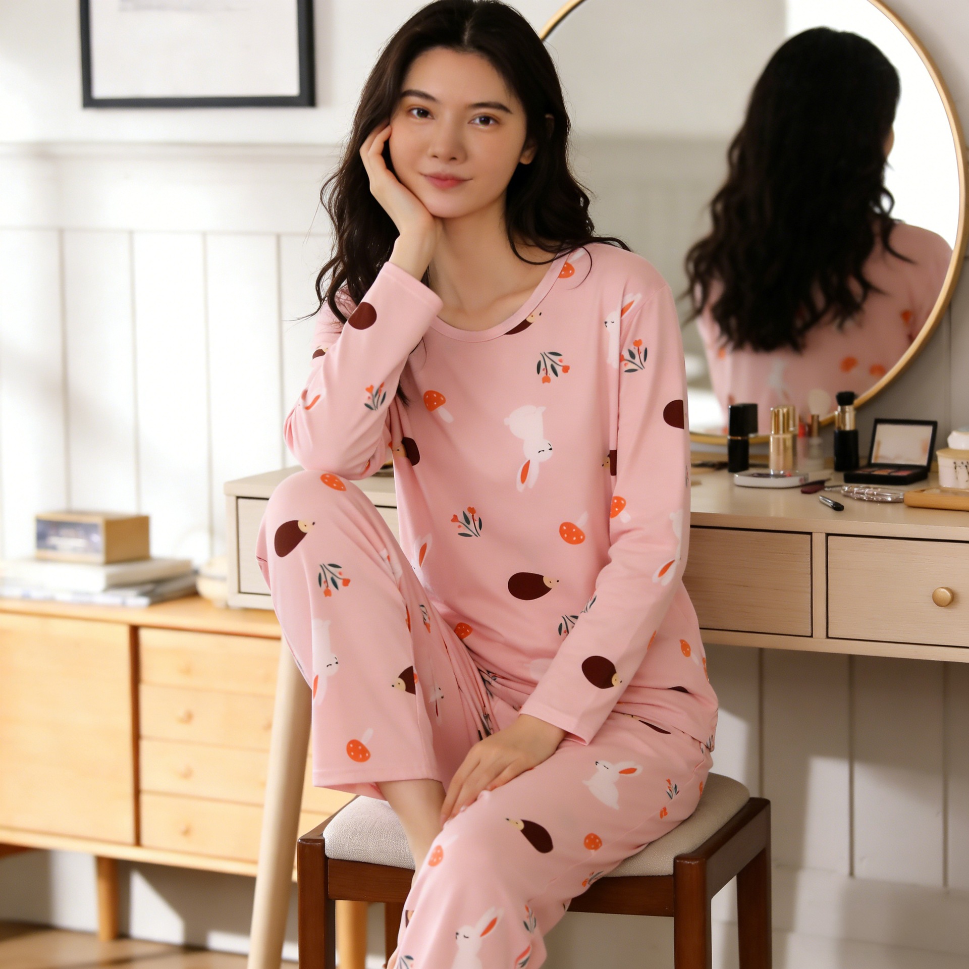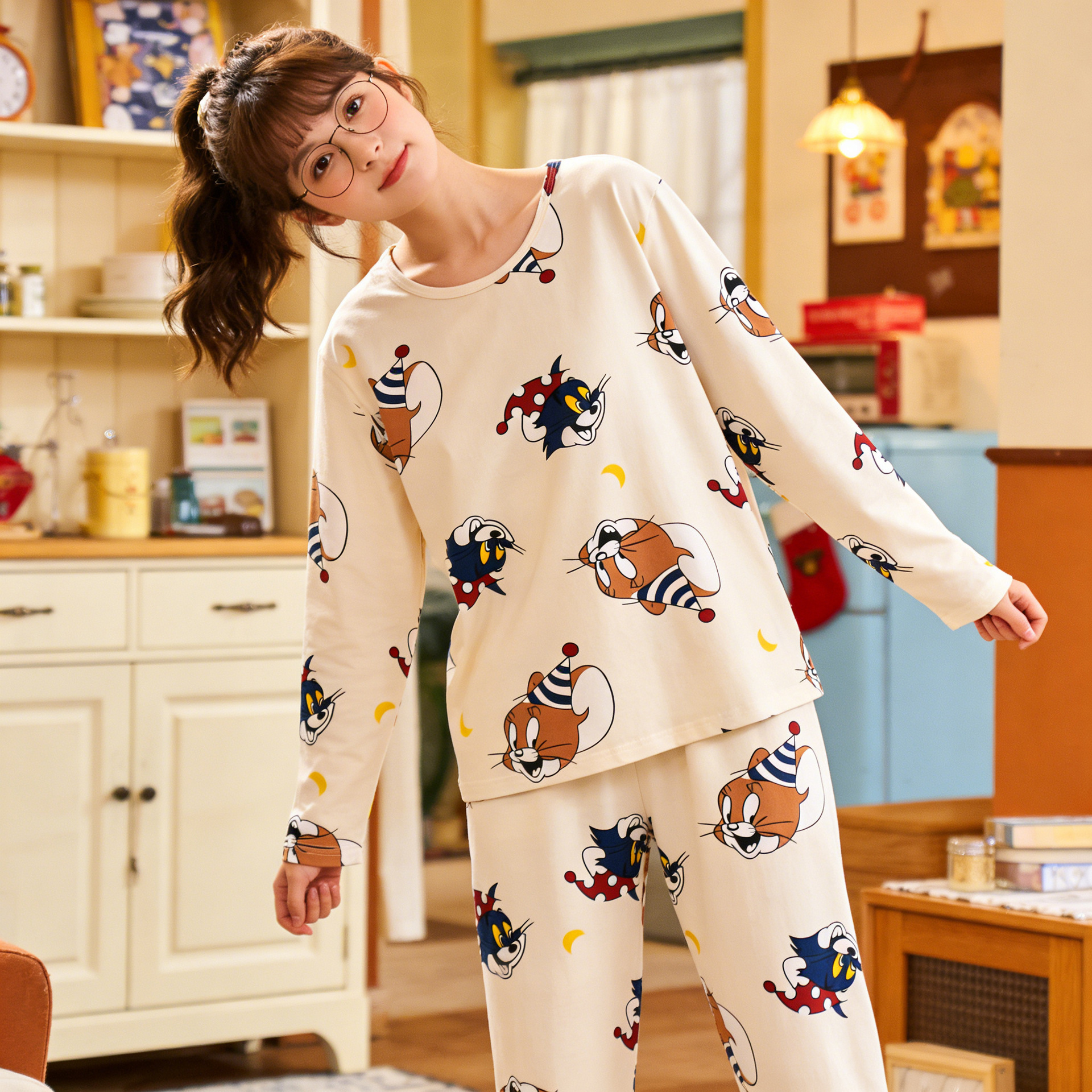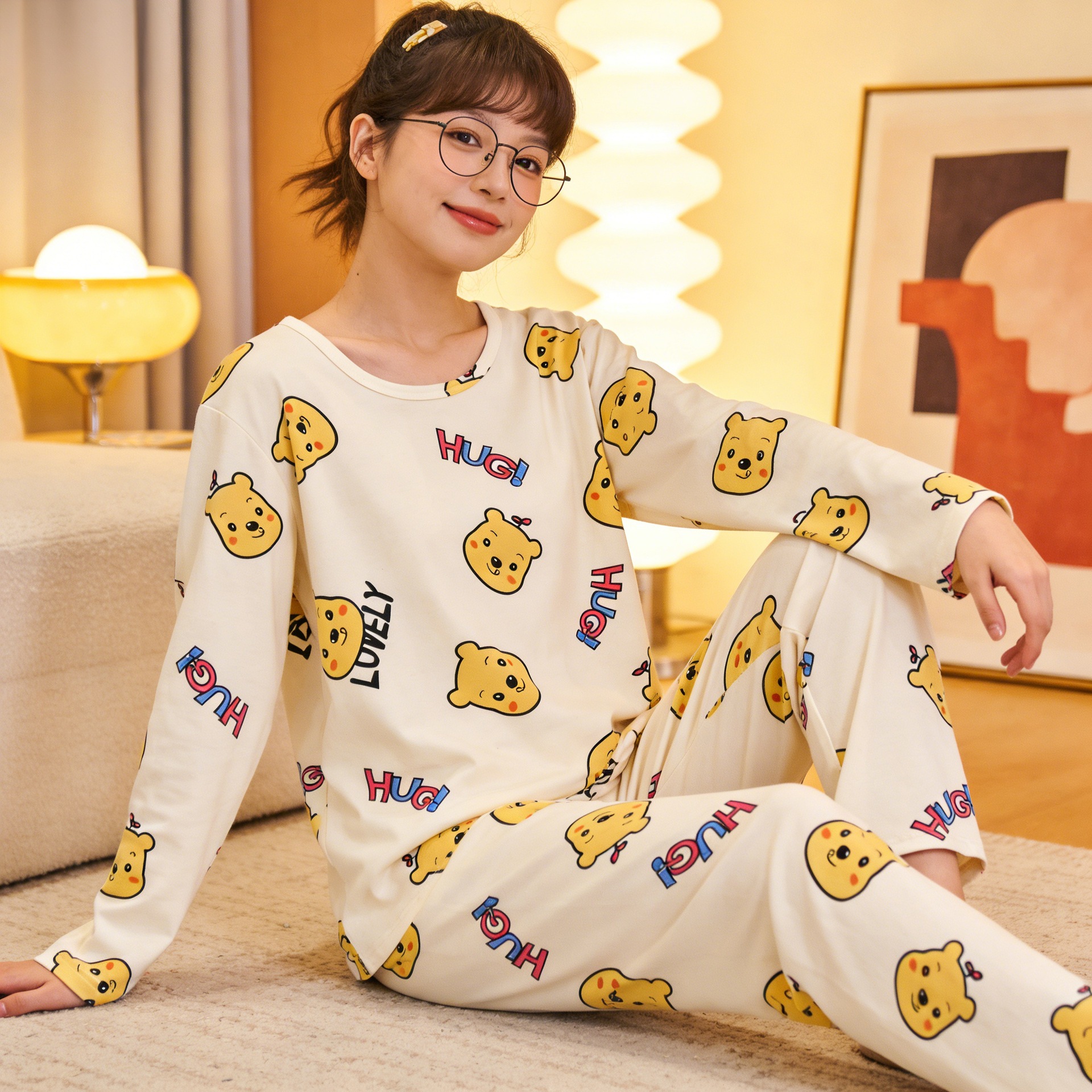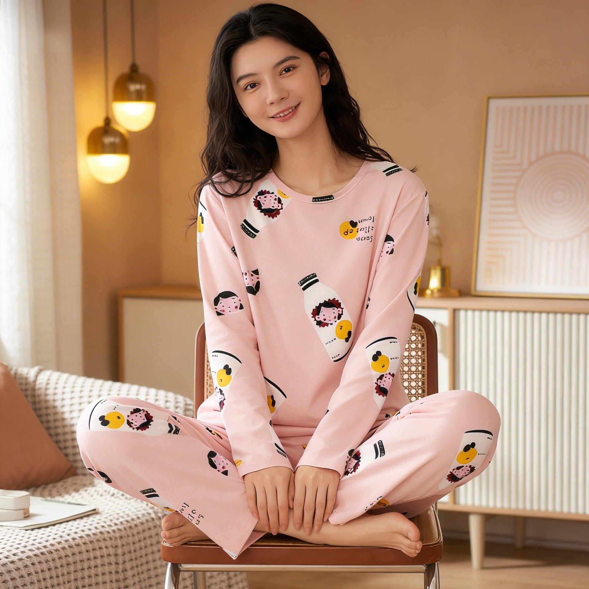 공장 아울렛 봄과 가을 새로운 한국 잠옷 여성 캐주얼 편안한 라운드 넥 긴 소매 복장 가정 의류