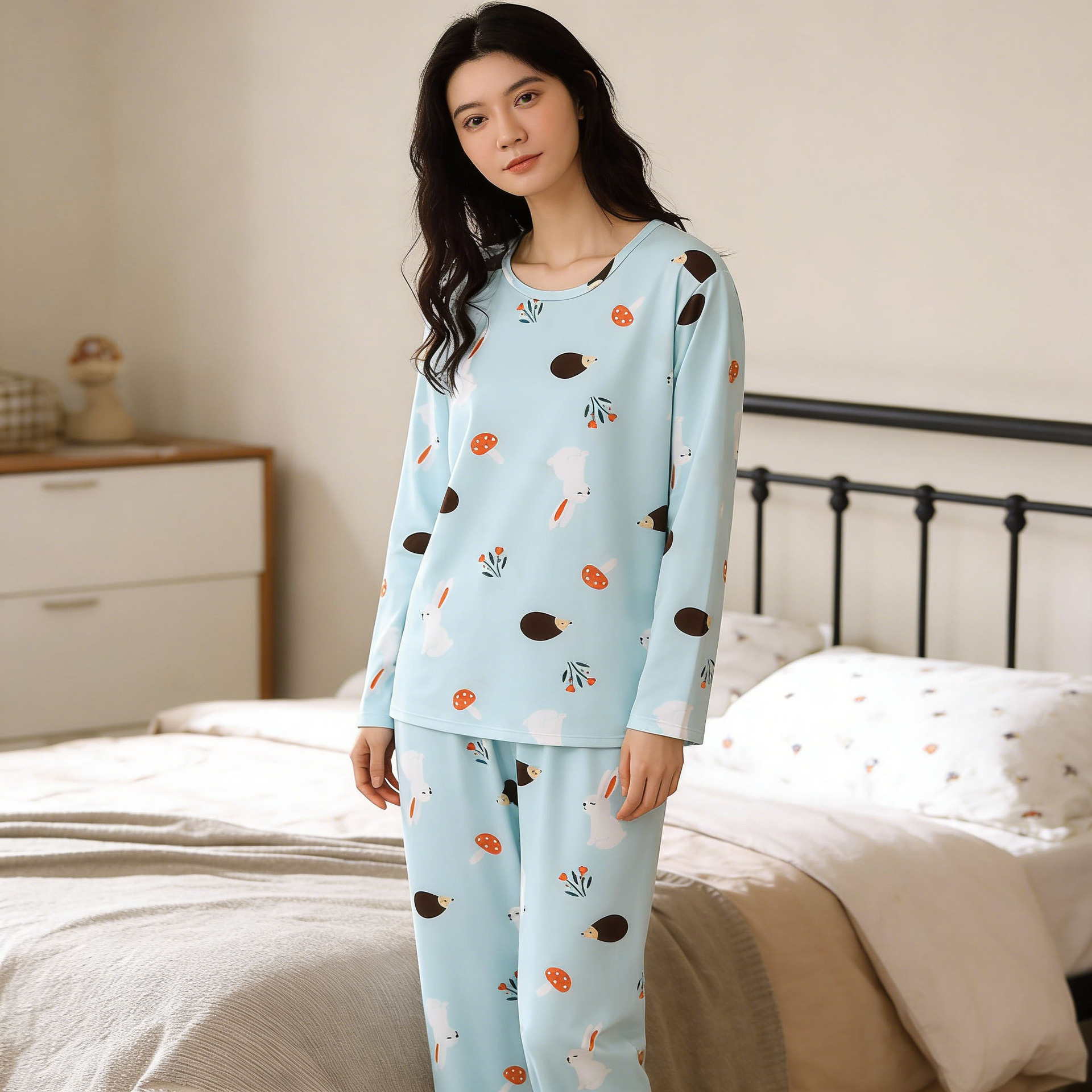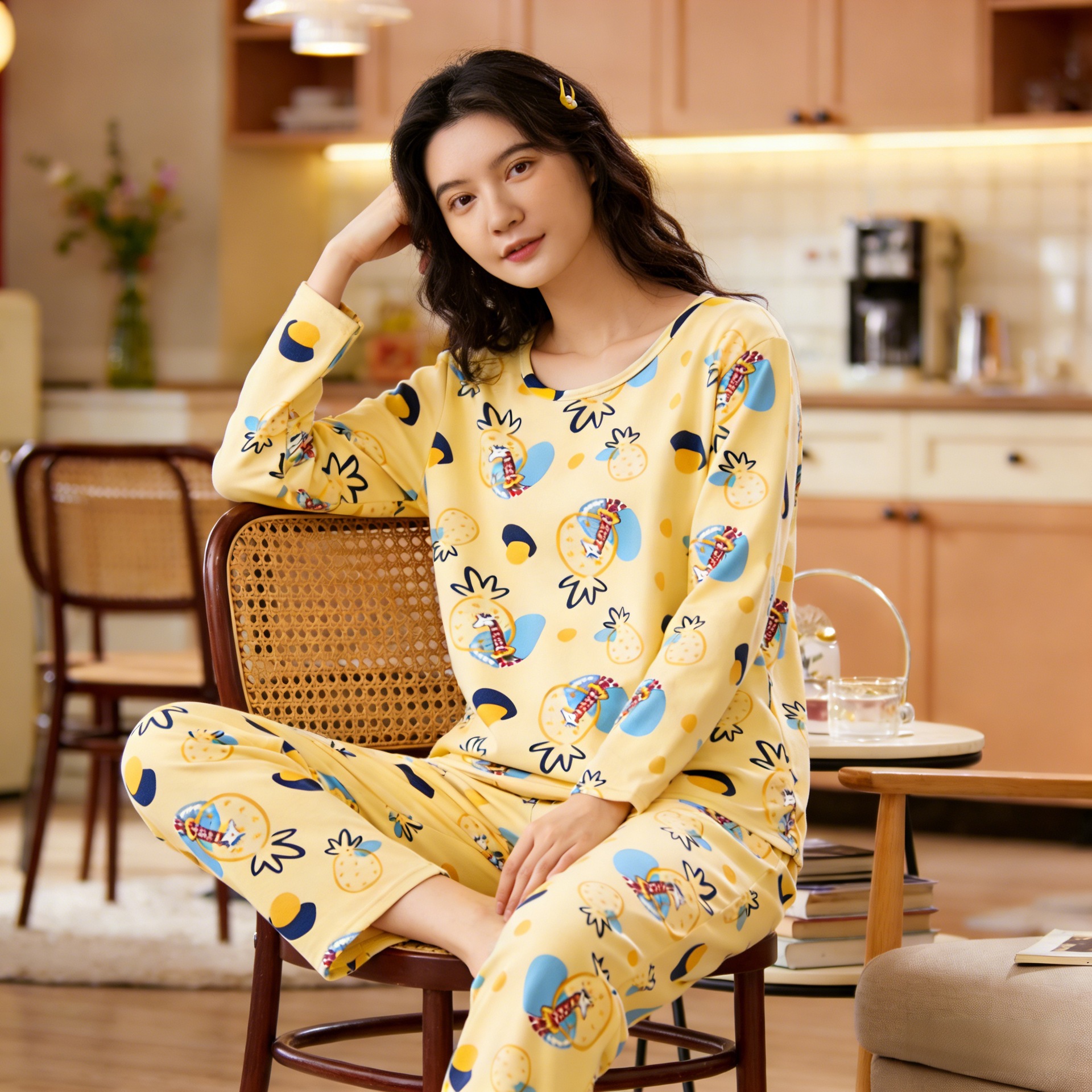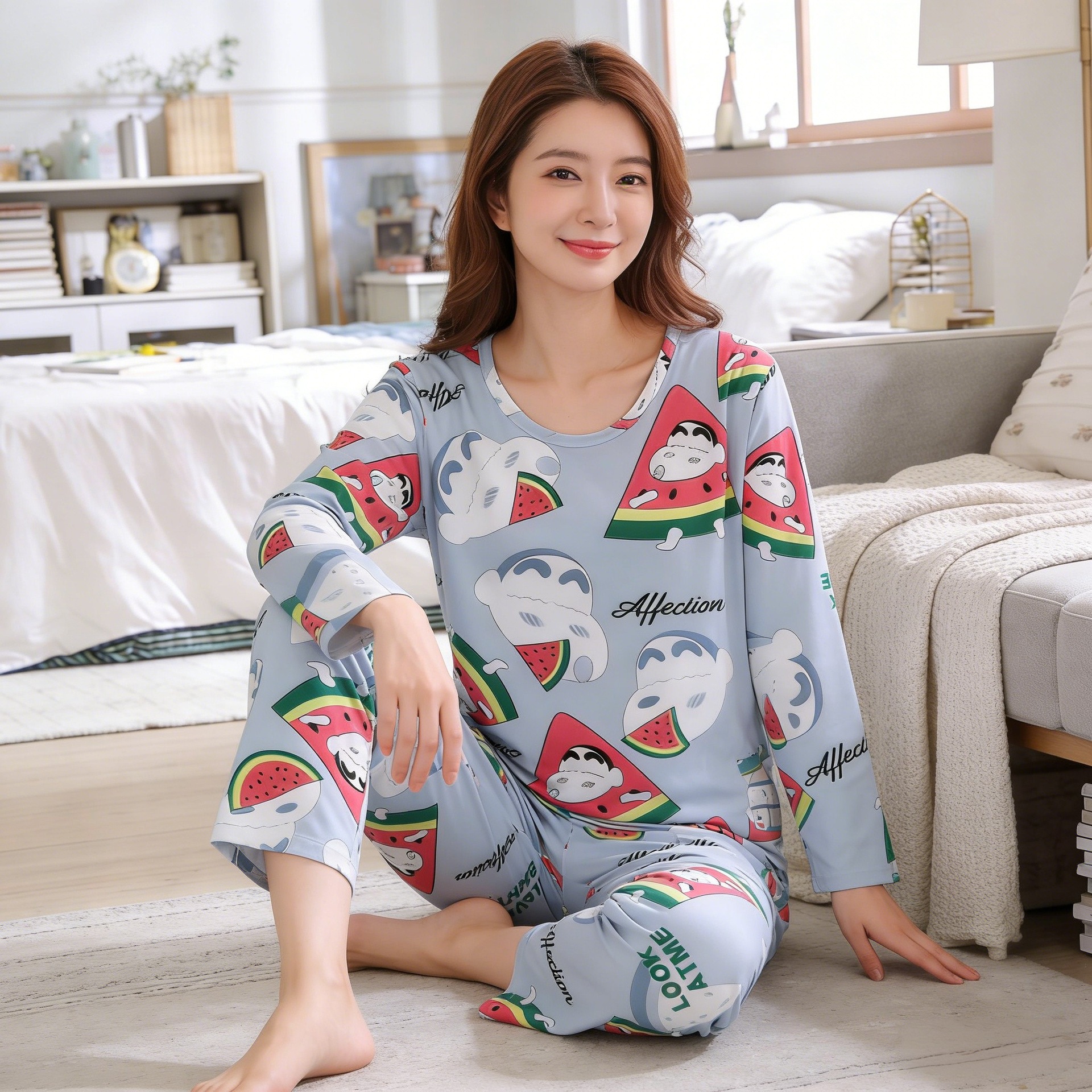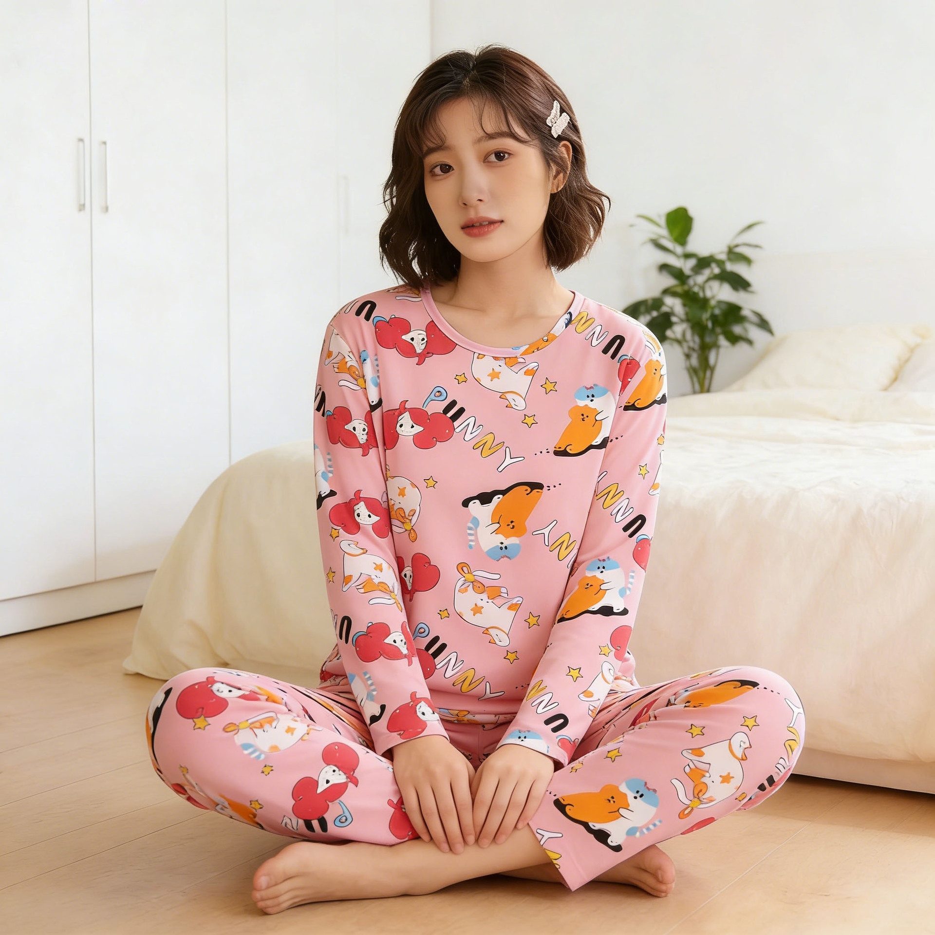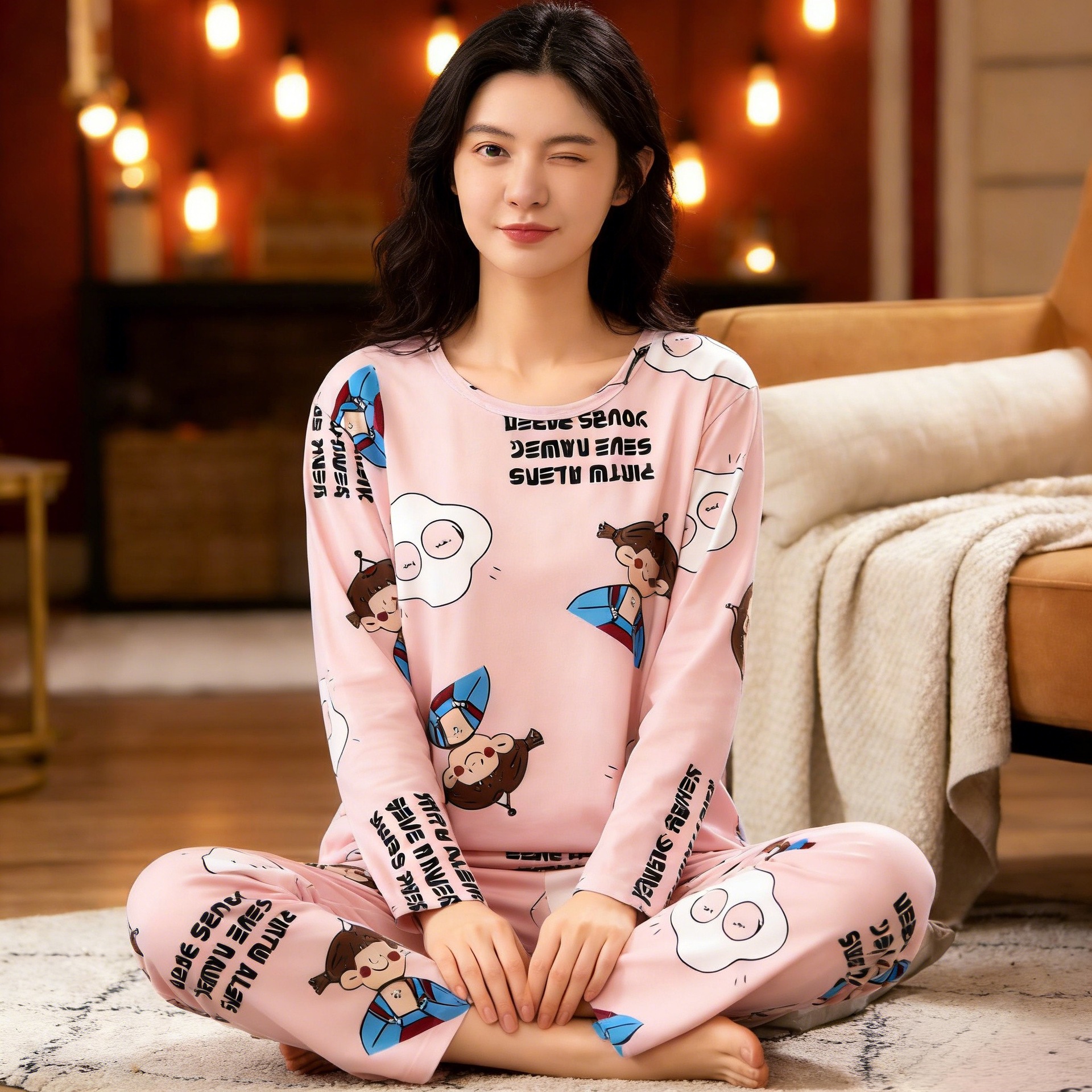공장 아울렛 봄과 가을 새로운 한국 잠옷 여성 캐주얼 편안한 라운드 넥 긴 소매 복장 가정 의류
