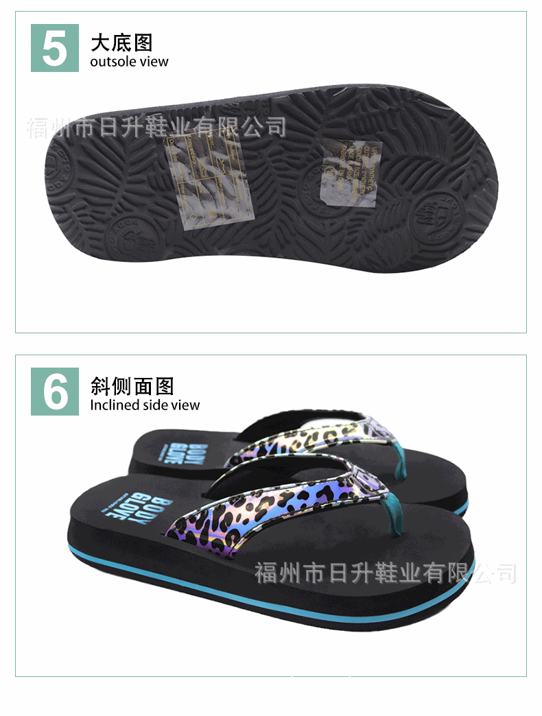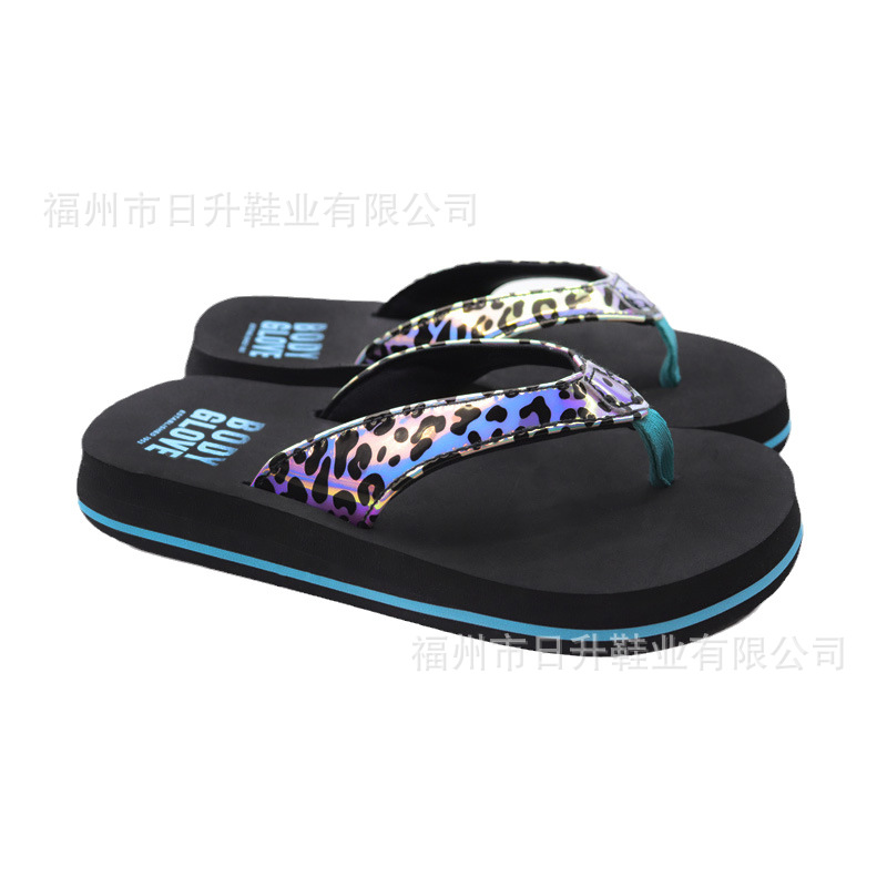 OEM 맞춤형 유럽과 미국 어린이 슬리퍼 소녀 레오파드 PU 표면 EVA 플랫 바닥 플립 플롭 비치 슬리퍼