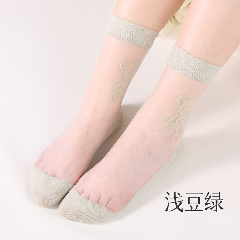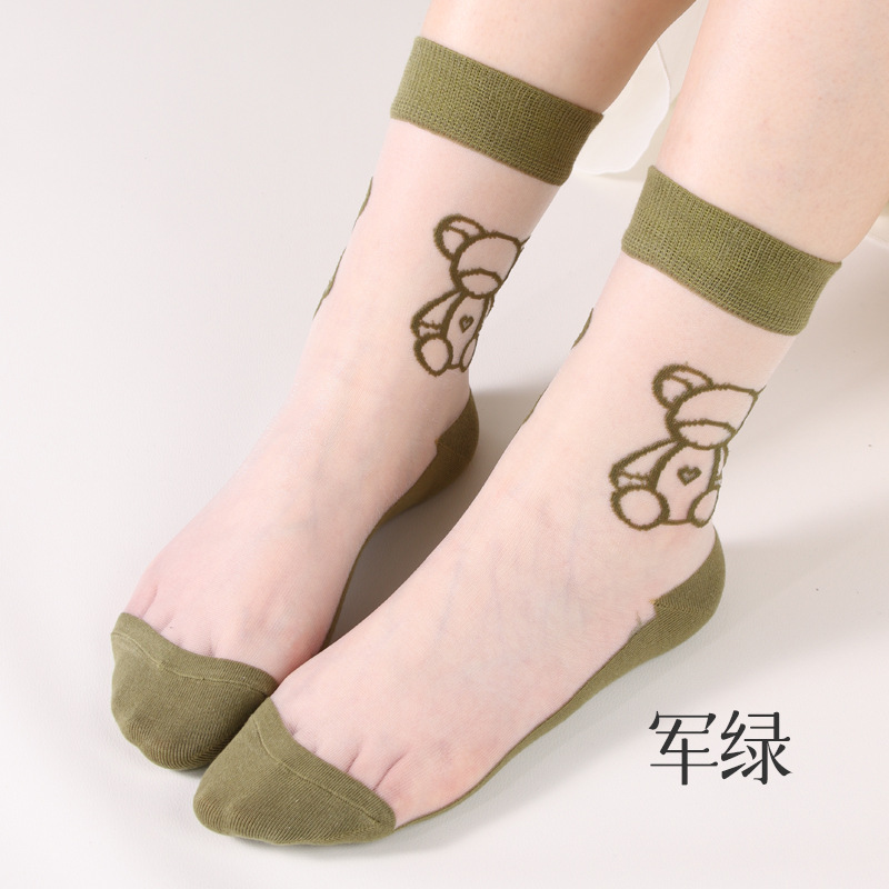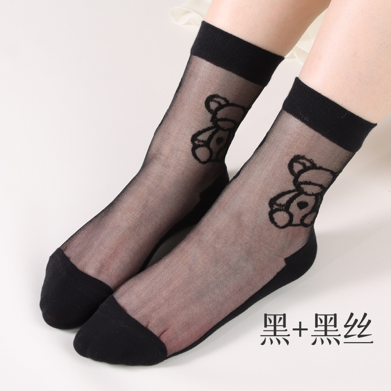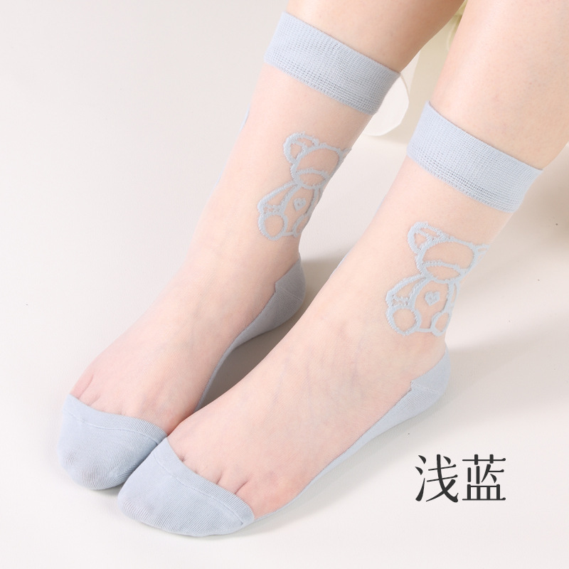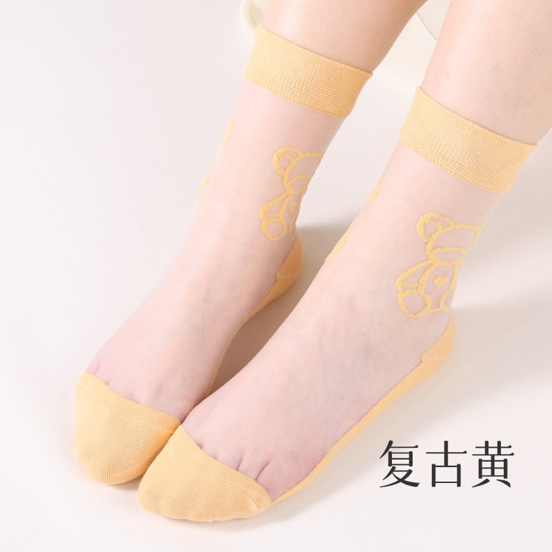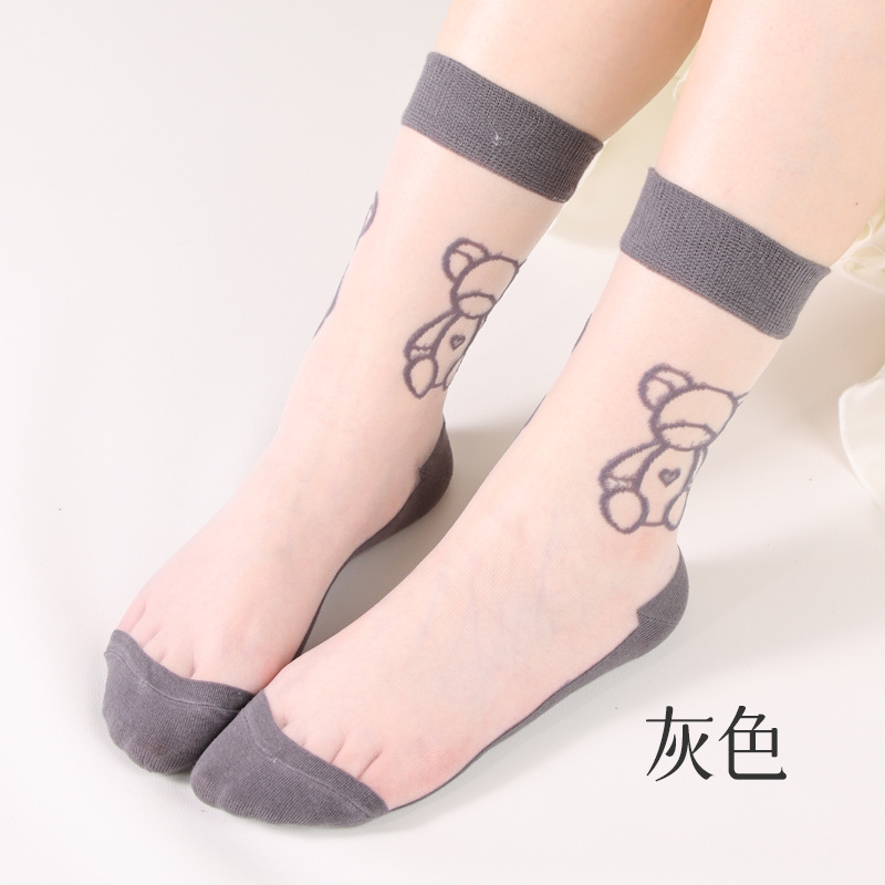 여성용 여름 얇은 양말, 일본풍 귀여운 만화 인스 트렌드 중간 길이 양말, 유리섬유 여성 양말