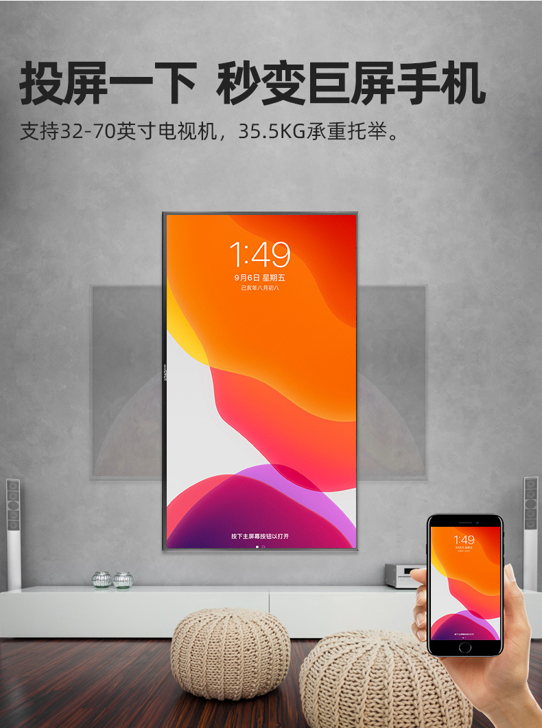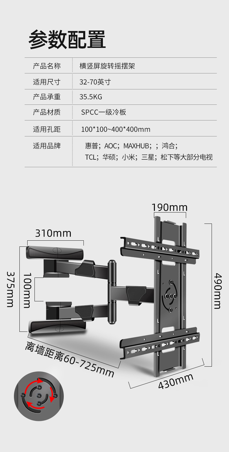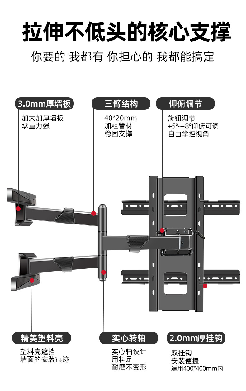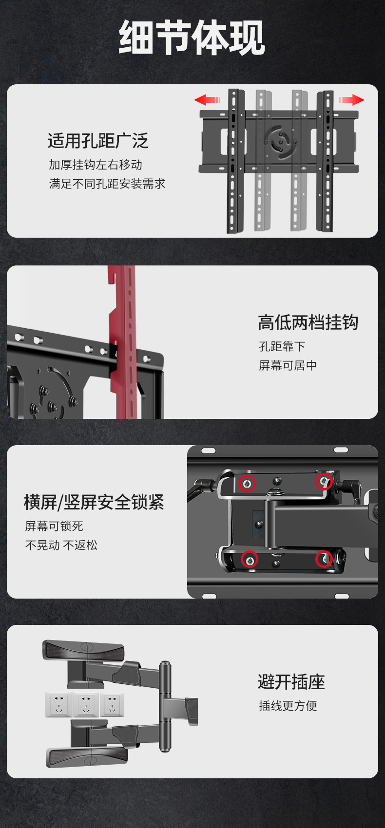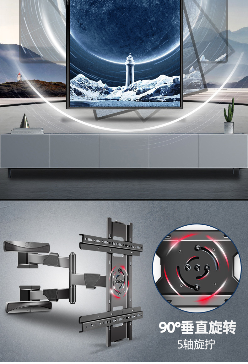 세 가지 정책 도매 55 인치 TV 접이식 텔레스코픽 32/43/60/65/70 인치 TV 수평 및 수직 회전 브래킷