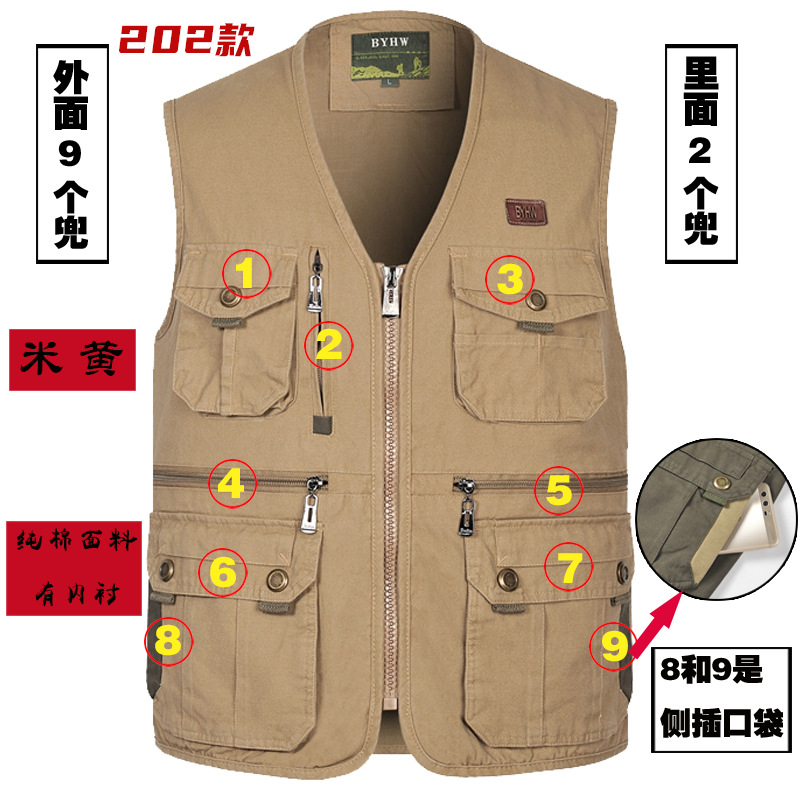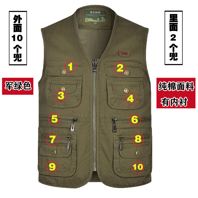 멀티 포켓 순면 조끼 중년 및 노인 남성 캐주얼 플러스 사이즈 도구 조끼 야외 여행 등산 조끼 재킷스토어 가기