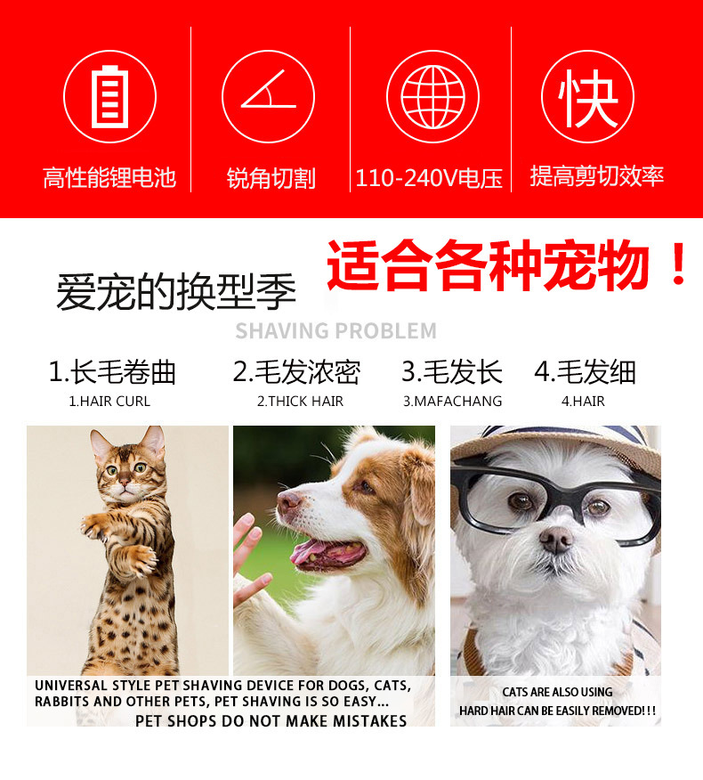 아마존 헤어 푸셔 개 머리 면도 애완 동물 전기 클리퍼 세트 고양이 헤어 커터