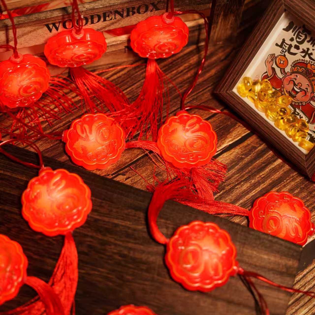 새로운 주도 봄 축제 랜턴 문자열 중국 스타일 술 레드 랜턴 랜턴 새해 축제 푸 캐릭터 펜던트 장식 랜턴 문자열