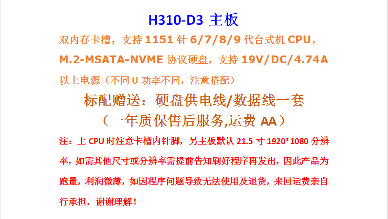 새로운 H310 미니 산업용 제어 컴퓨터/호스트는 6, 7, 8, 9세대 1151핀 CPU 마더보드를 지원합니다.