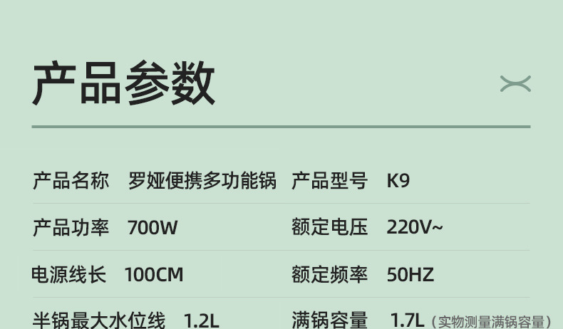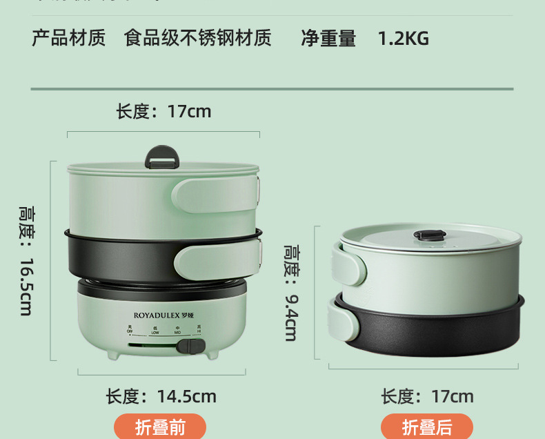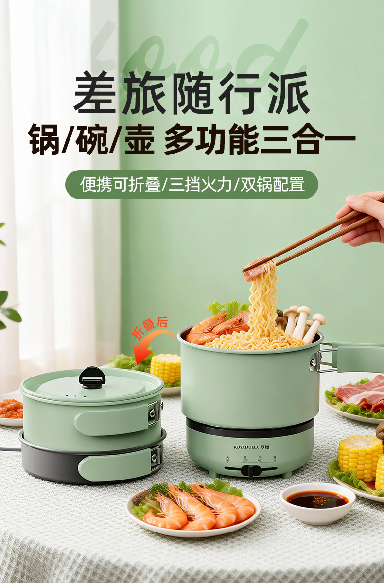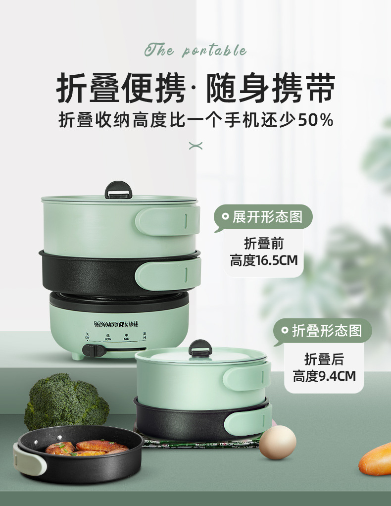 루야 휴대용 접이식 전기 냄비 학생 기숙사 가정용 다기능 전기 조리기 소형 가전 선물