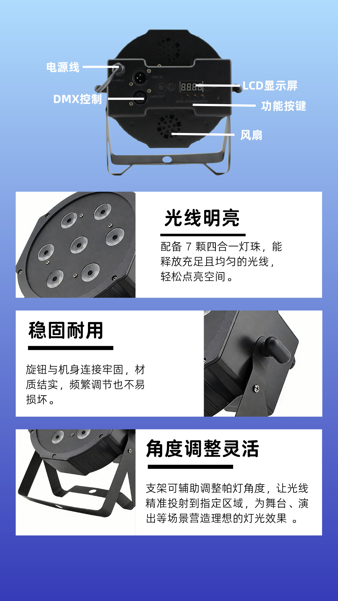 무대 조명 7개의 4-in-1 LED 풀컬러 파 라이트 바 KTV 웨딩 분위기 조명 플라스틱 플랫 파 라이트