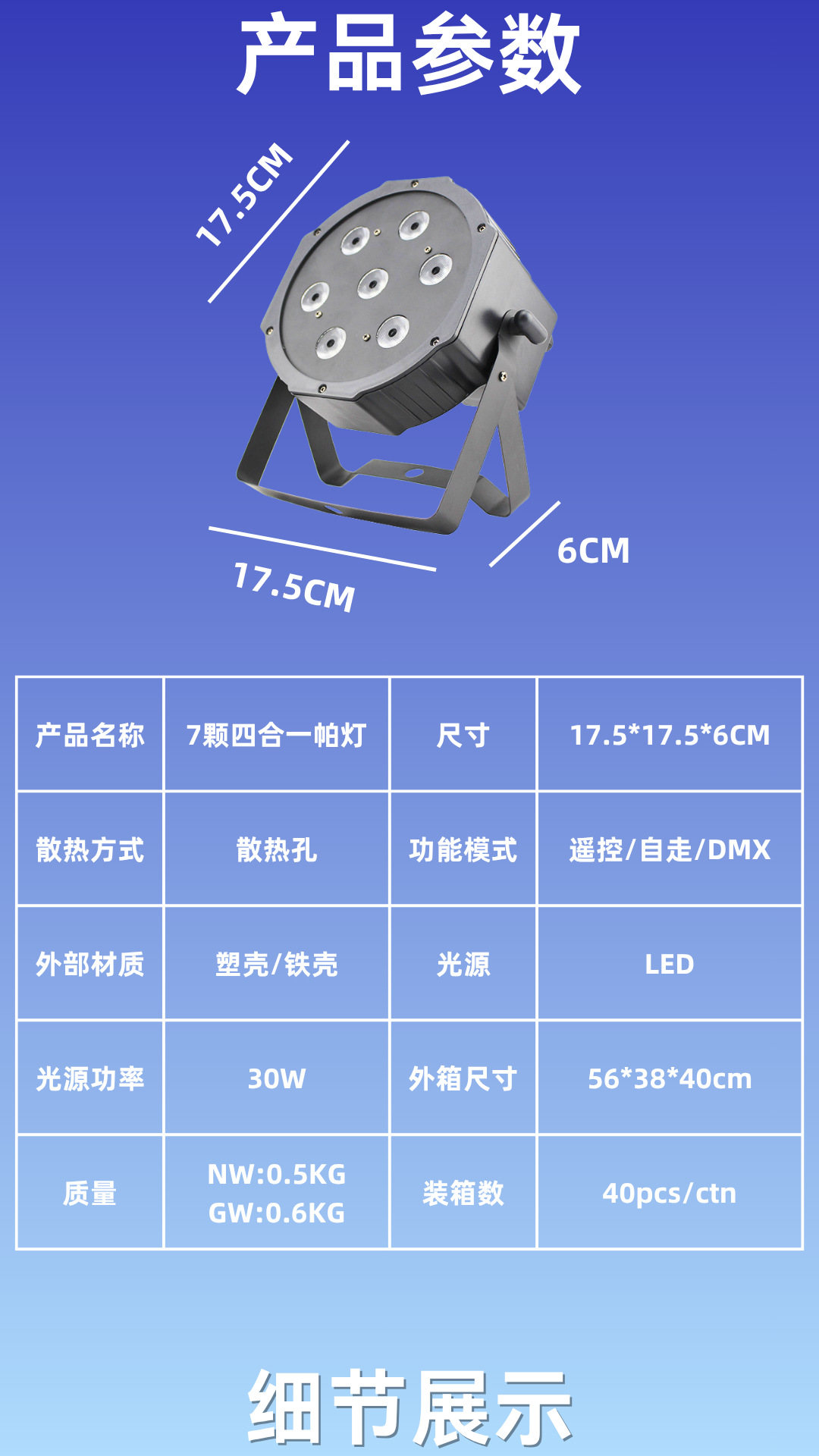 무대 조명 7개의 4-in-1 LED 풀컬러 파 라이트 바 KTV 웨딩 분위기 조명 플라스틱 플랫 파 라이트스토어 가기