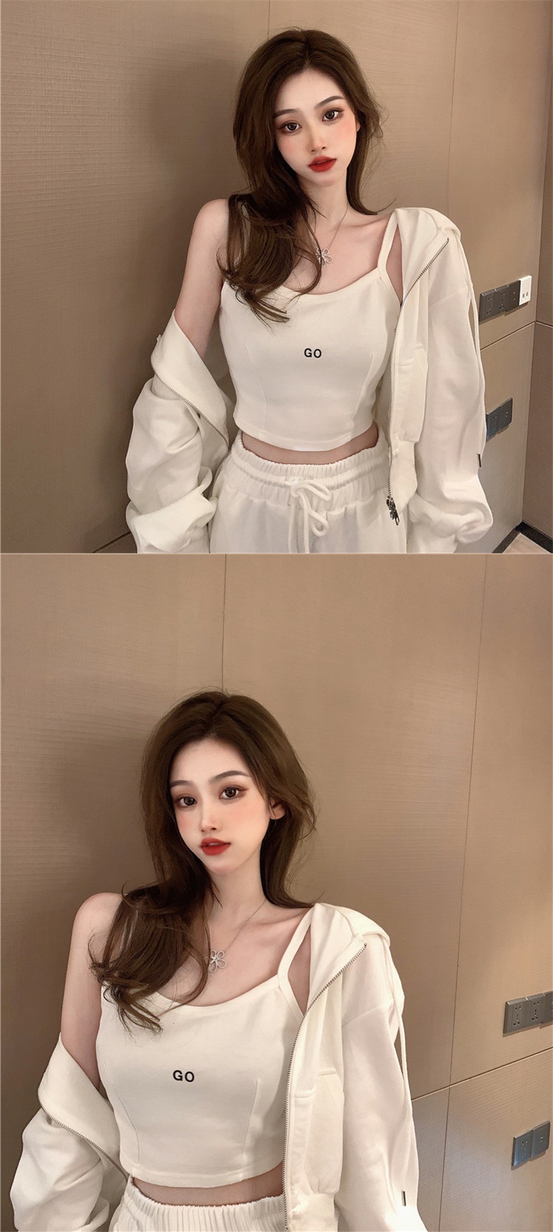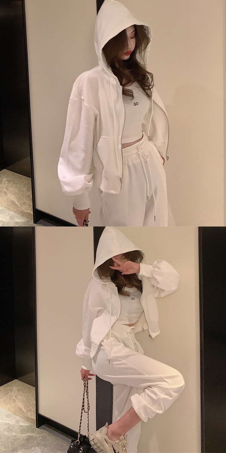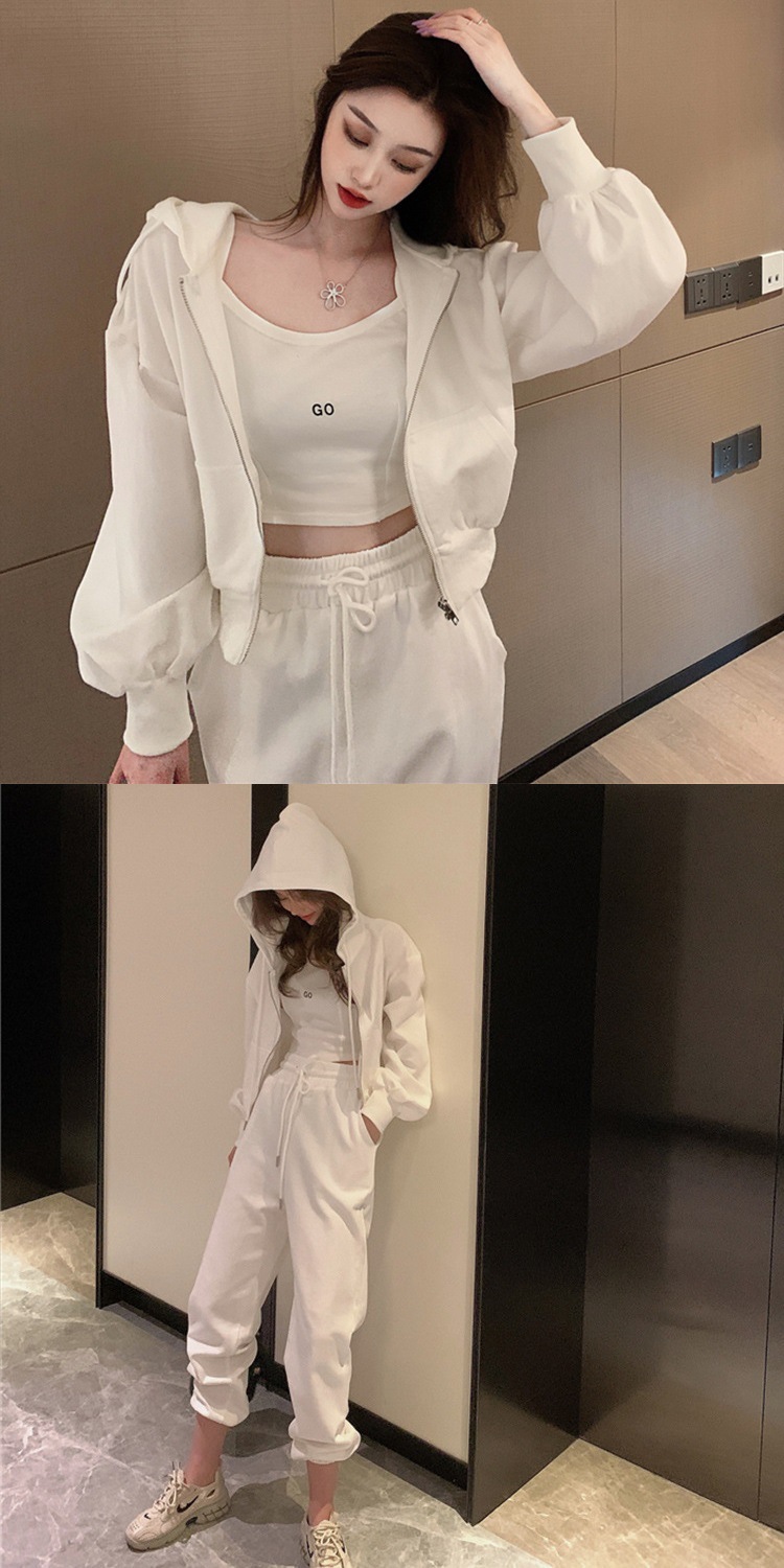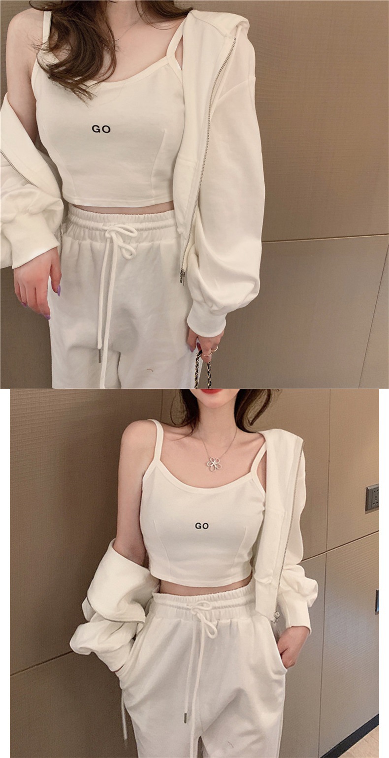 2026년 초봄 홍콩 스타일 신상 캐주얼 스포츠 슈트 여성용 긴바지 지퍼 스웨트셔츠 자켓 여성용 멜빵 3종 세트 트렌디스토어 가기