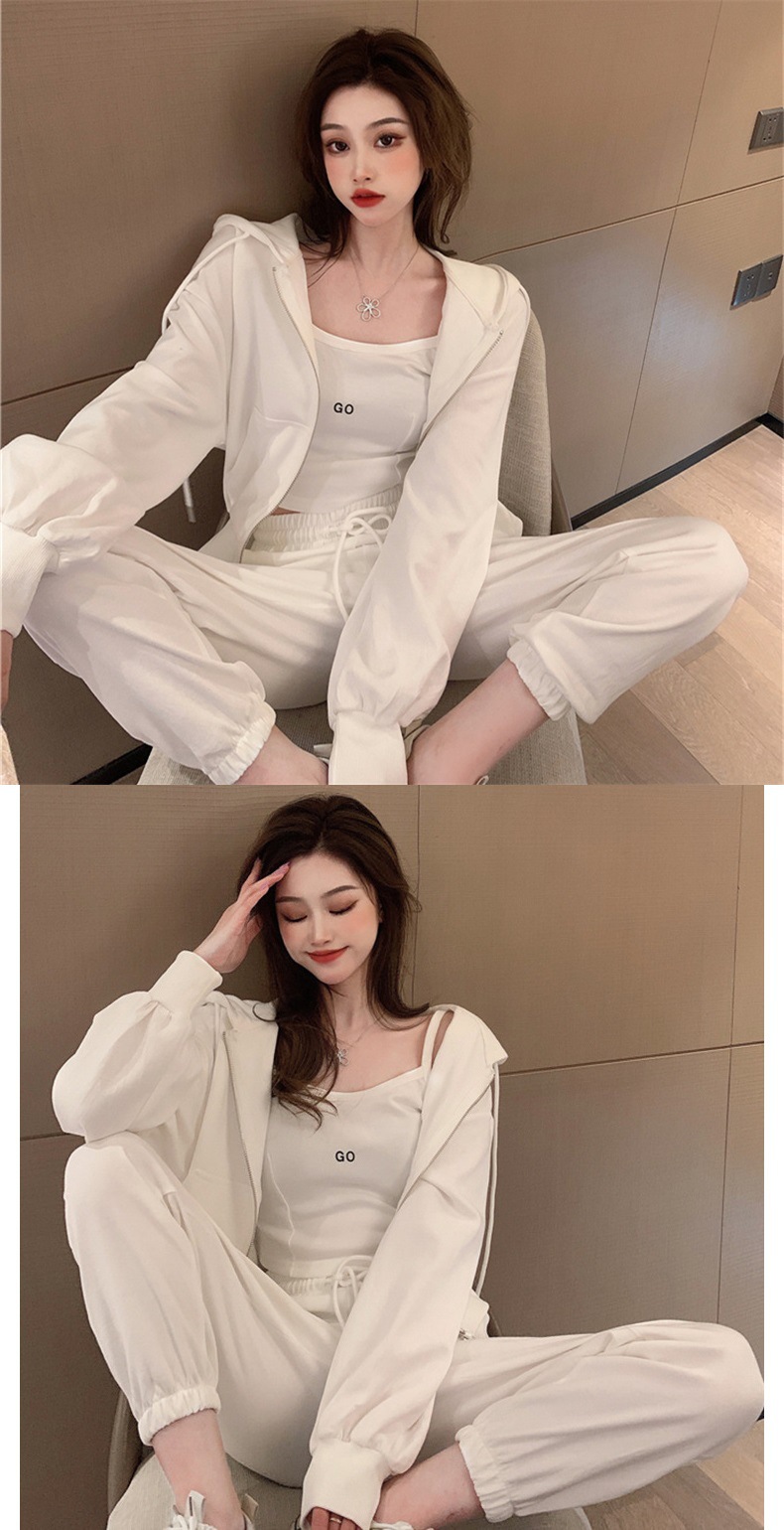 2026년 초봄 홍콩 스타일 신상 캐주얼 스포츠 슈트 여성용 긴바지 지퍼 스웨트셔츠 자켓 여성용 멜빵 3종 세트 트렌디
