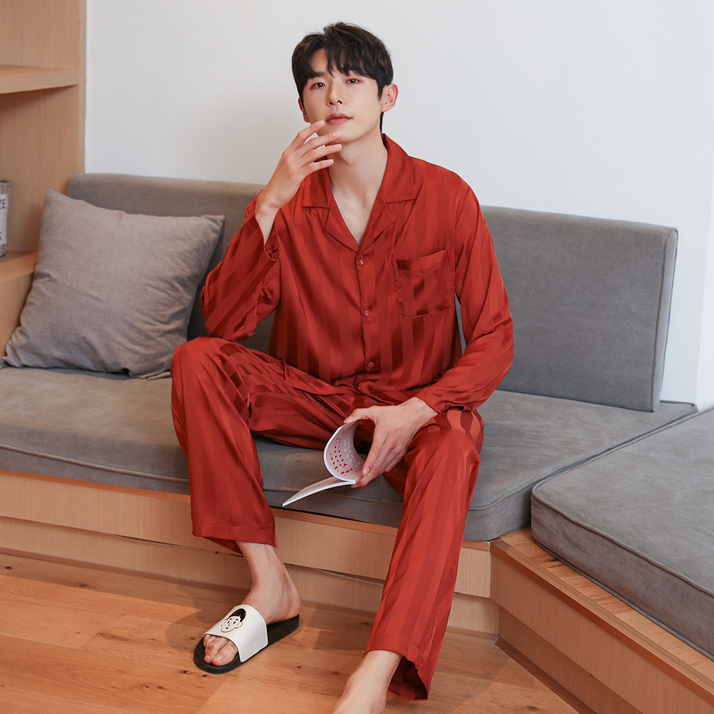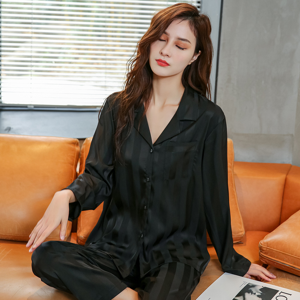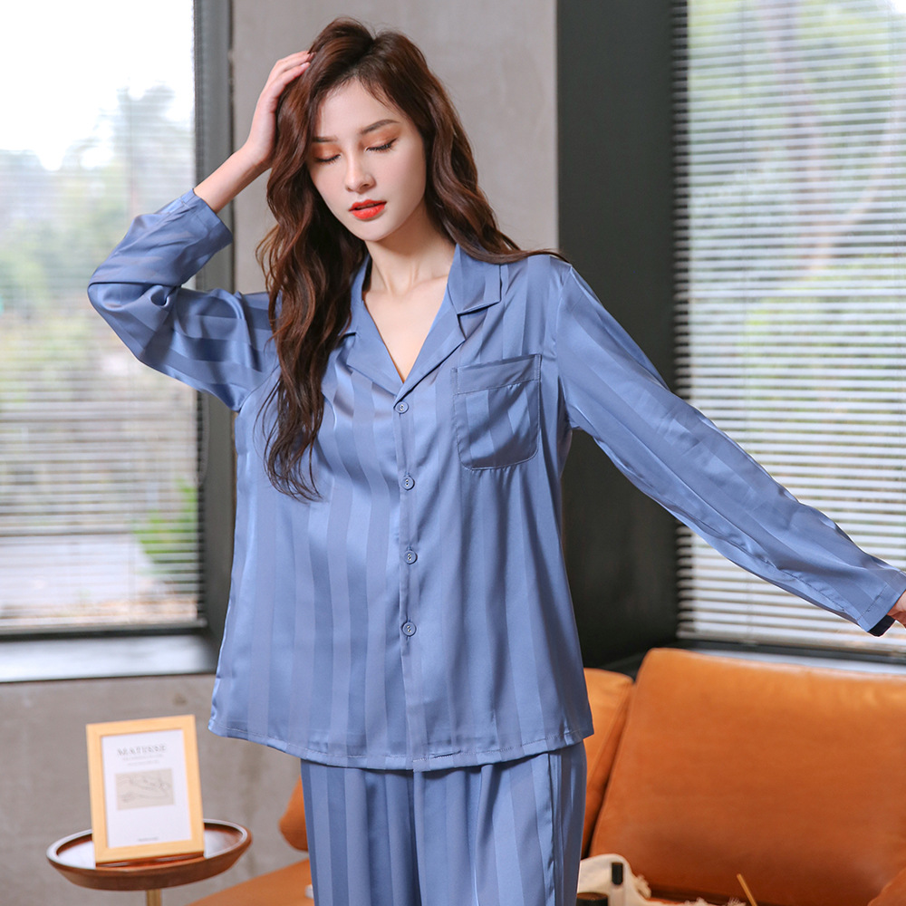 2022 봄 새로운 커플 잠옷 여성 아이스 실크 와이드 자카드 쉐이크 사운드 솔리드 컬러 홈 의류 제조 업체의 세대