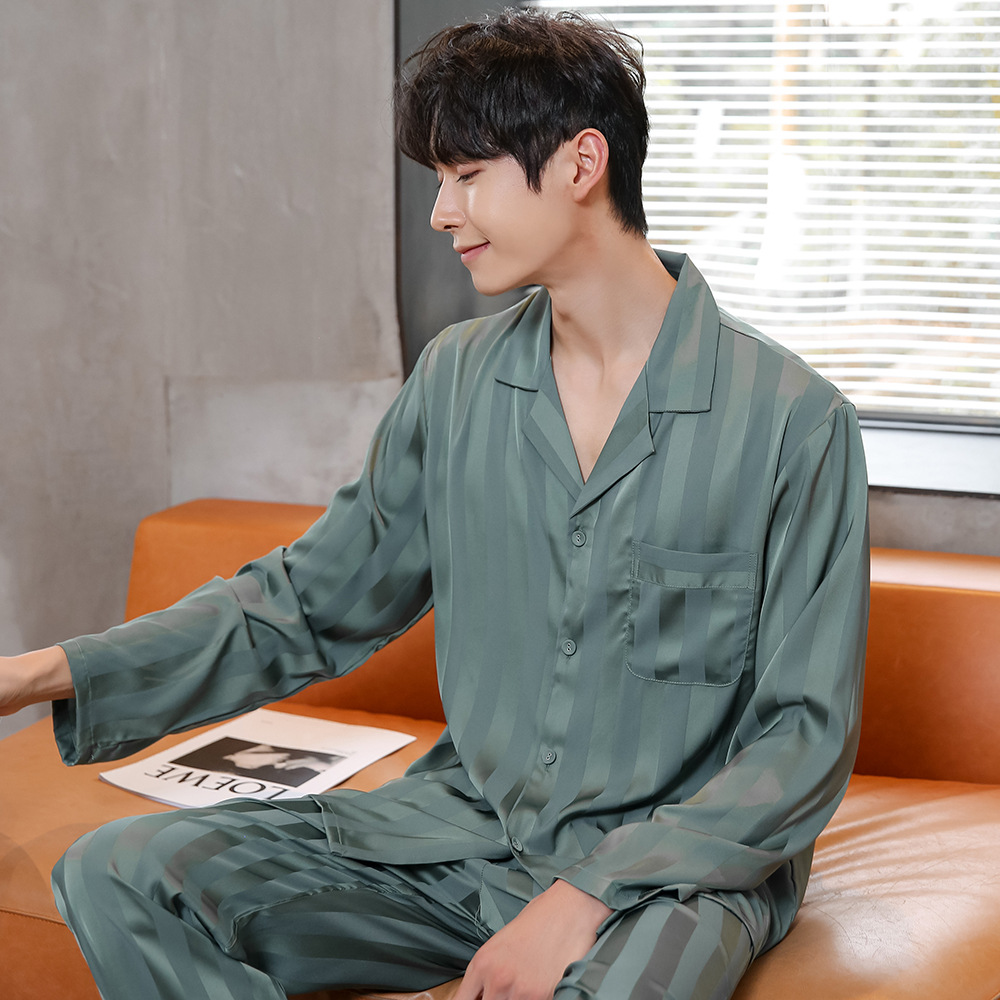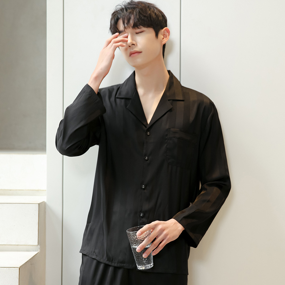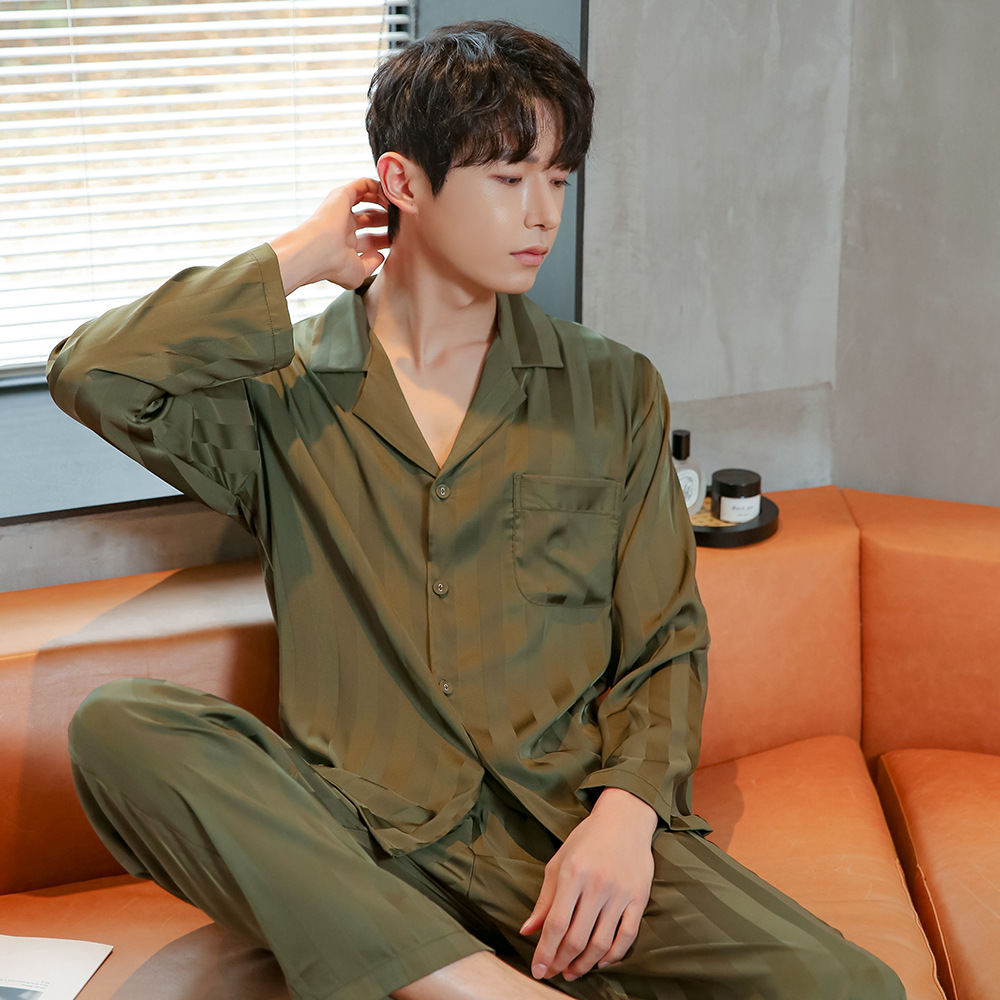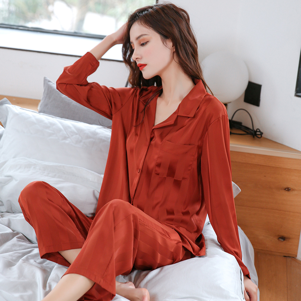 2022 봄 새로운 커플 잠옷 여성 아이스 실크 와이드 자카드 쉐이크 사운드 솔리드 컬러 홈 의류 제조 업체의 세대