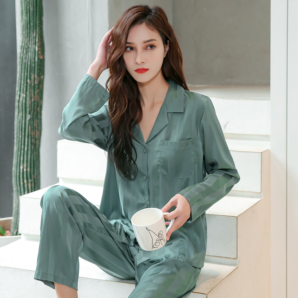 2022 봄 새로운 커플 잠옷 여성 아이스 실크 와이드 자카드 쉐이크 사운드 솔리드 컬러 홈 의류 제조 업체의 세대스토어 가기
