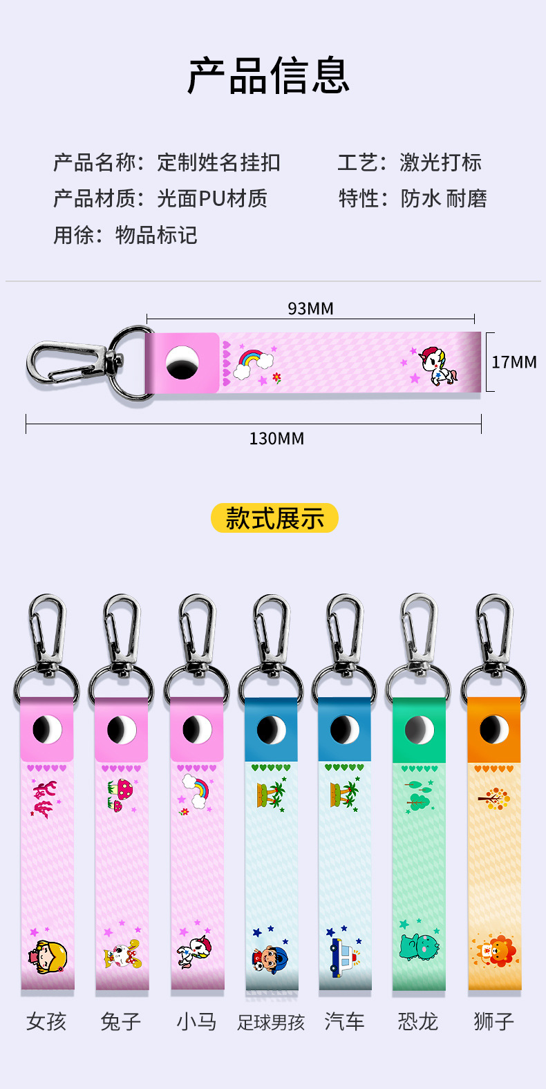 Gu Yin Ge 이름 열쇠 걸이 유치원 학생 아기 수화물 가방 이름 가죽 교수형 도매