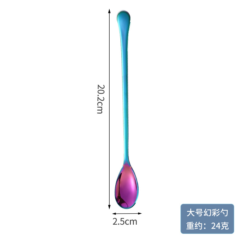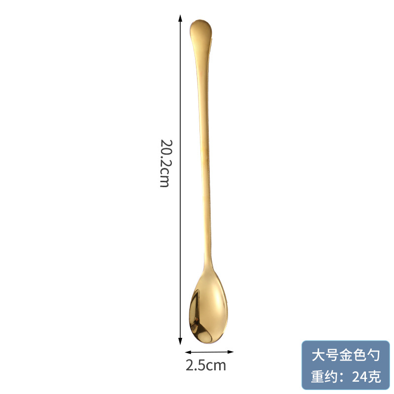 304 스테인레스 스틸 스푼 아이스크림 디저트 커피 조미료 꿀 긴 손잡이 믹싱 스푼 과일 포크 로고 인쇄 가능스토어 가기