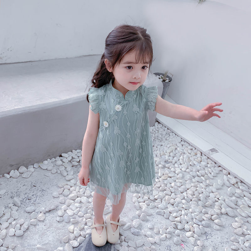 어린이 원피스 여성의 여름 아기 세련된 스커트 치파오 공주 원피스 어린이 조끼 원피스 2022 여름 신상품스토어 가기