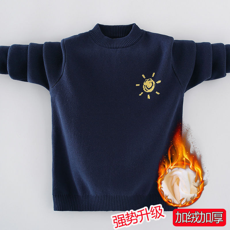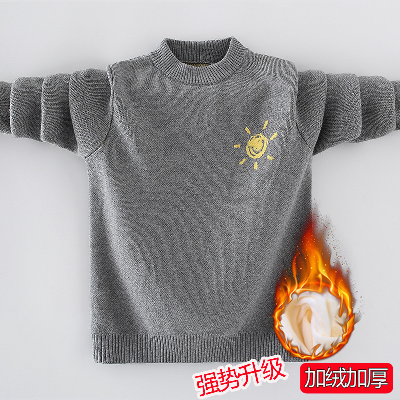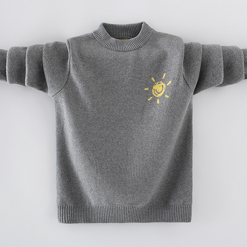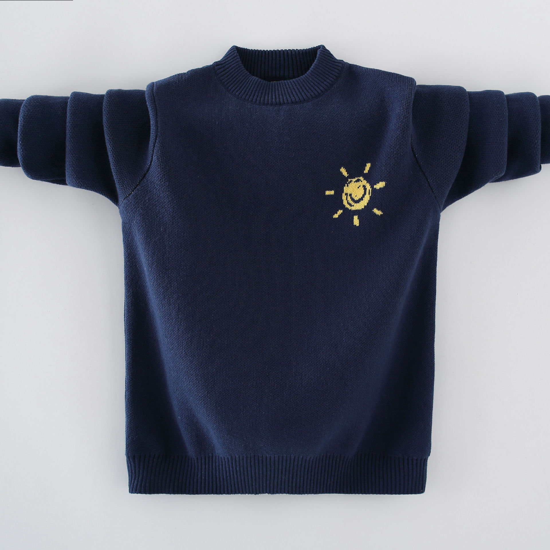 2024 남아용 중대형 아동용 스웨터, 두꺼운 라운드 넥 풀오버, 패셔너블한 니트 스웨터, 순면 스웨터스토어 가기