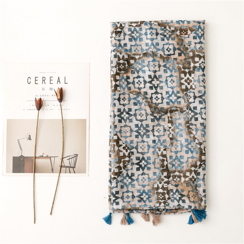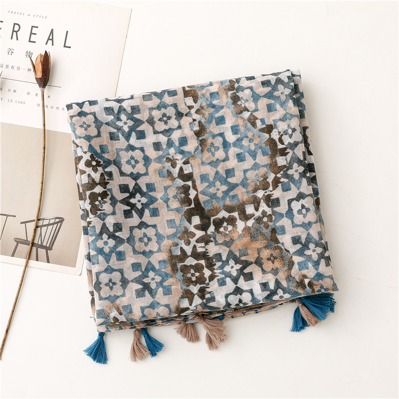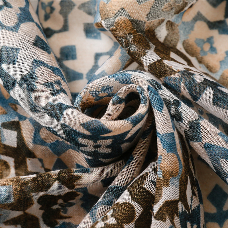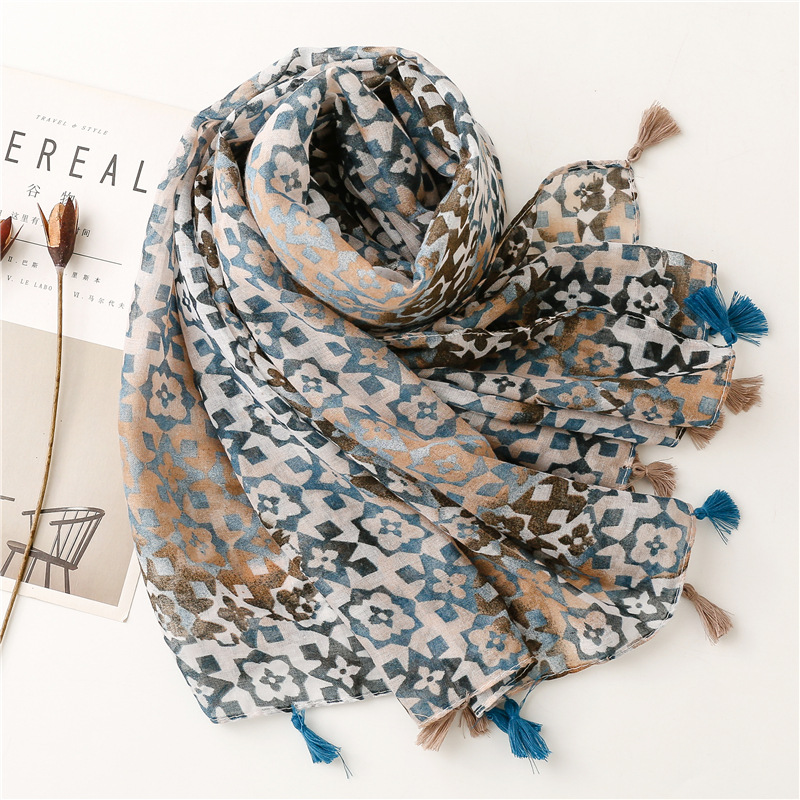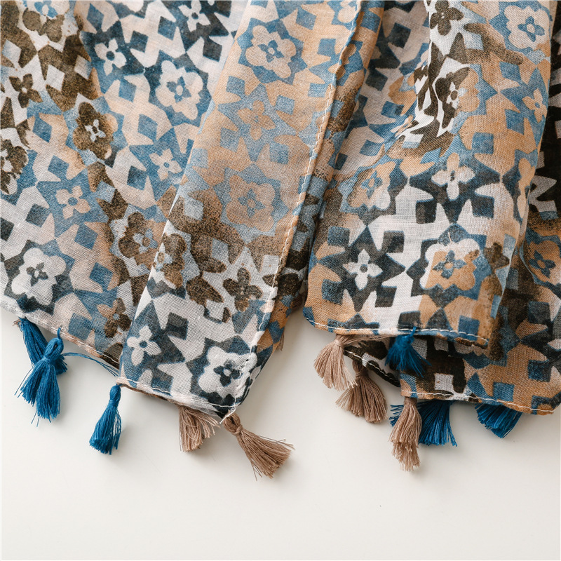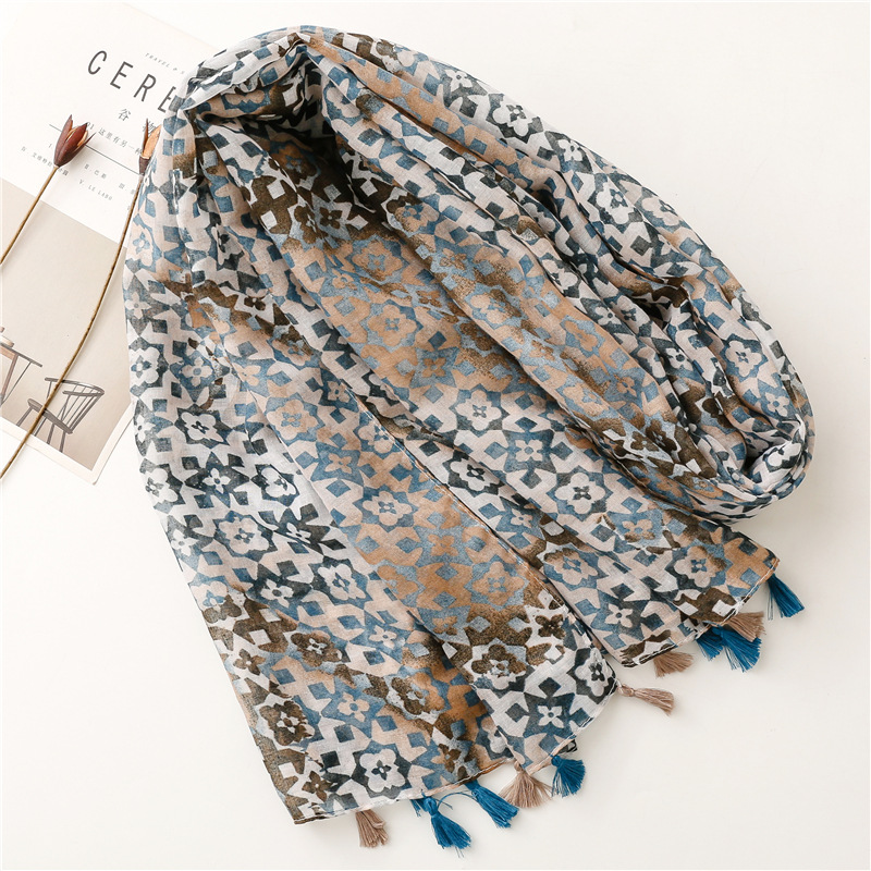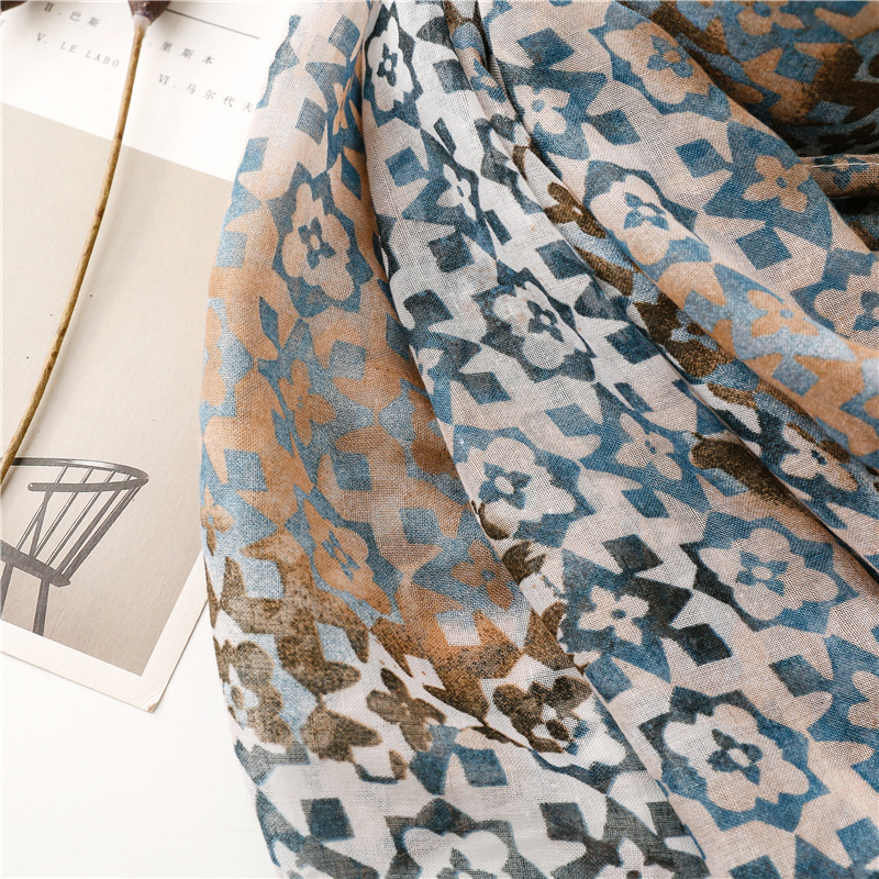 새로운 예술적 신선한 색상 그라디언트 기하학적 술 스카프 얇은 발리 원사 긴 자외선 차단제 숄 스카프