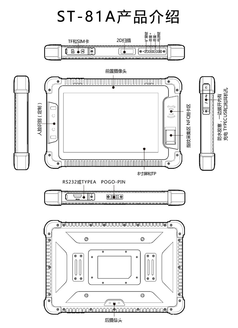 8 코어 안드로이드 태블릿 8 인치 HD 방수 및 방진 강화 산업용 컴퓨터 NFC 지문 3 개 태블릿