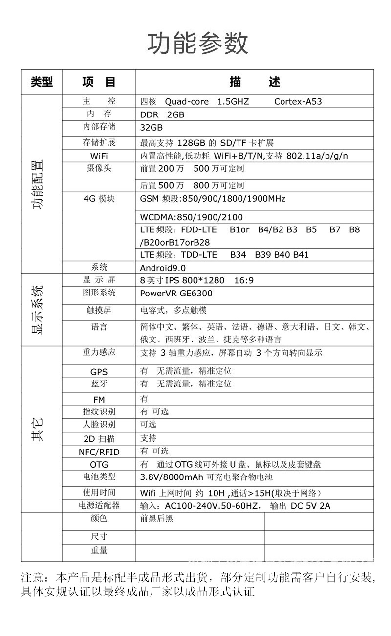 注意:本产品是标配半成品形式出货,部分定制功能需客户自行安装,具体安规认证以最终成品厂家以成品形式认证