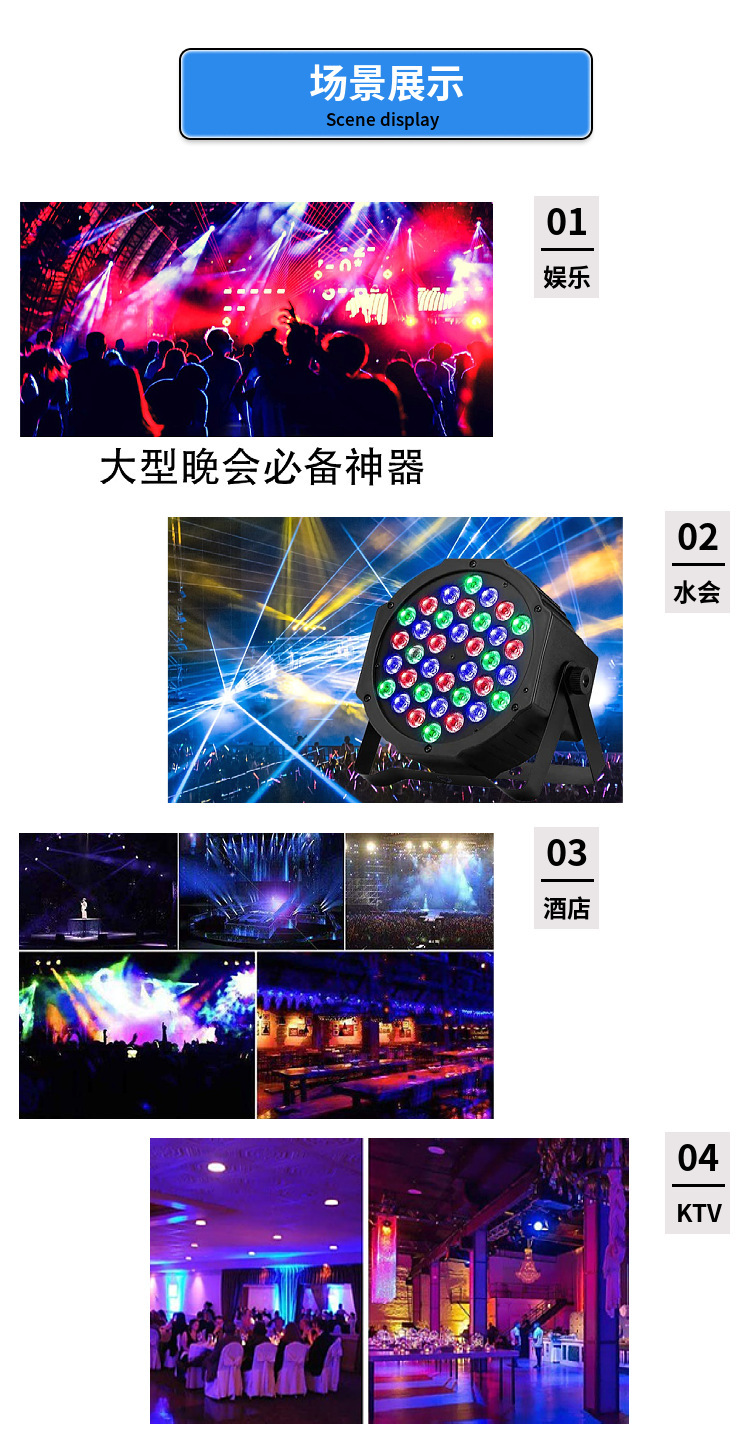 LED 7색 염색 조명 쇼 무대 조명 18W36W 파라이트 원격 제어 웨딩 파라이트 공연 조명 미니 레이저스토어 가기