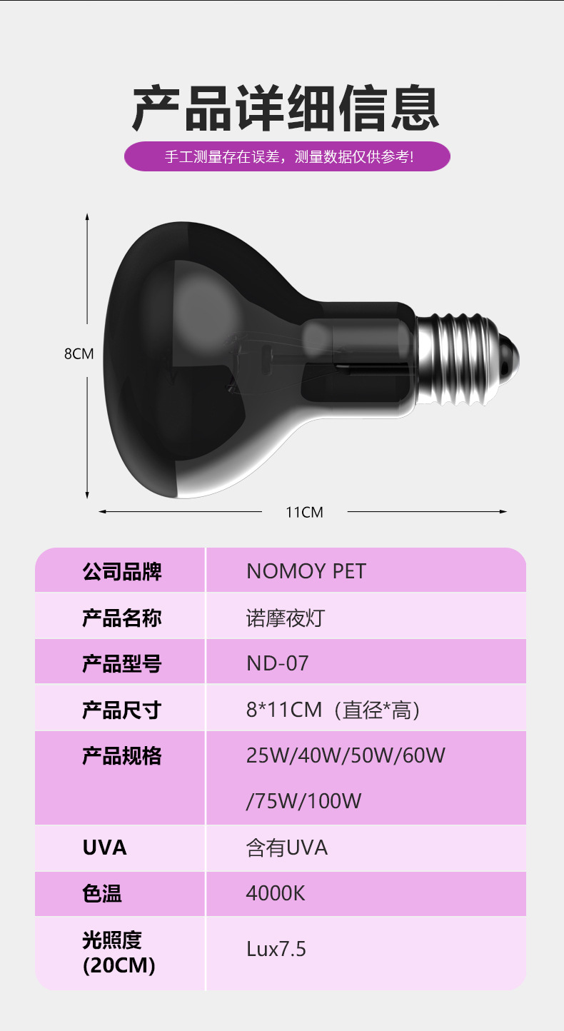노모 110vuva 야간 조명 거북이 양육 상자 난방 램프 열 보존 램프 달빛 도마뱀 뱀 파충류 따뜻한스토어 가기