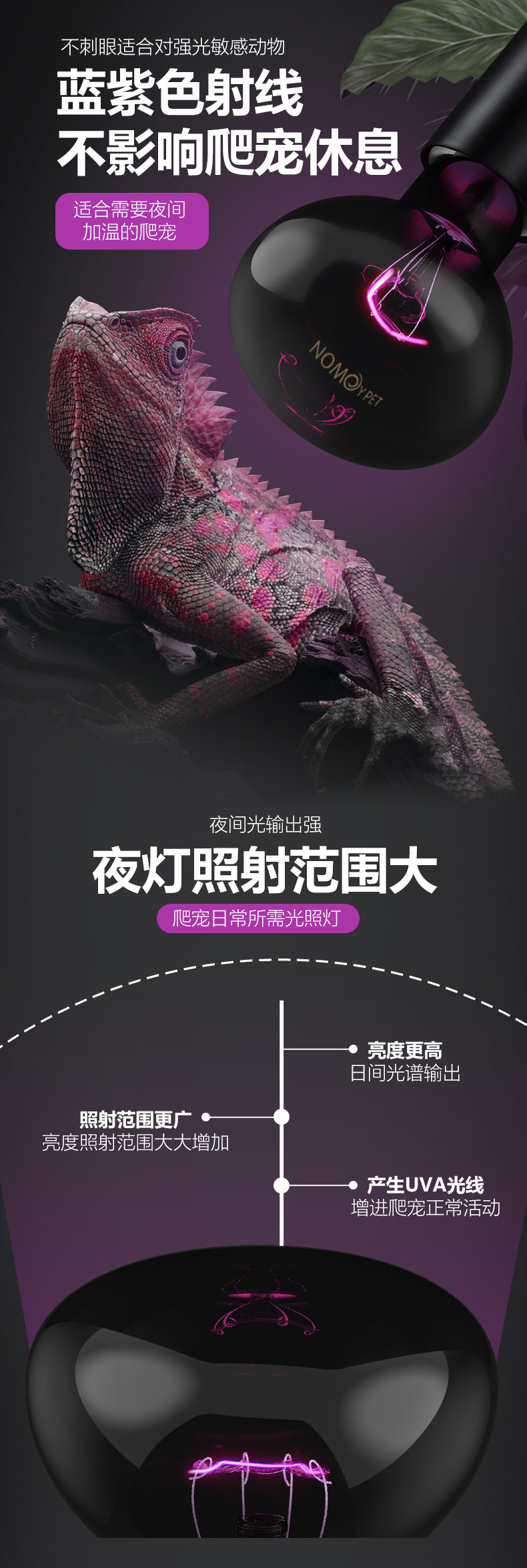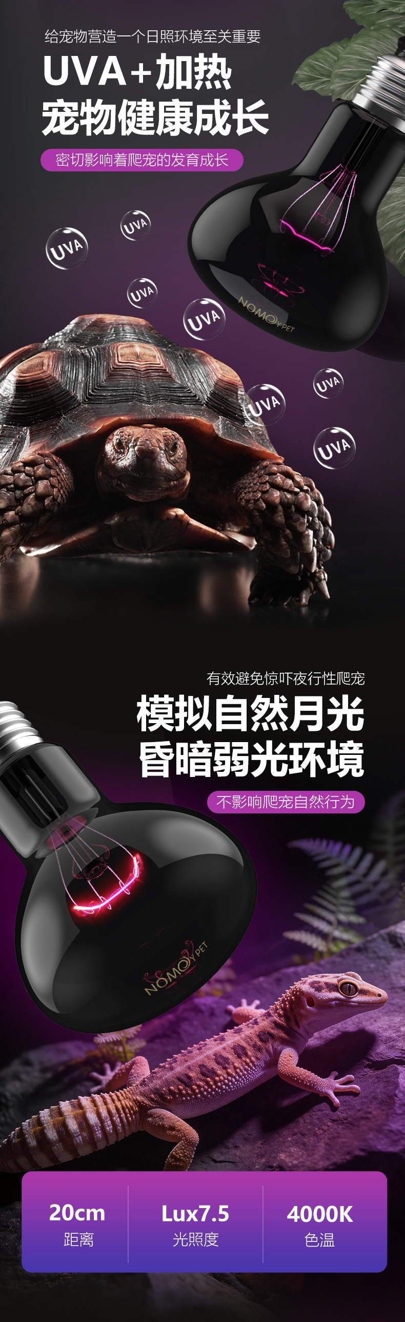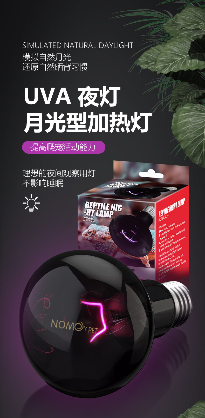 노모 110vuva 야간 조명 거북이 양육 상자 난방 램프 열 보존 램프 달빛 도마뱀 뱀 파충류 따뜻한