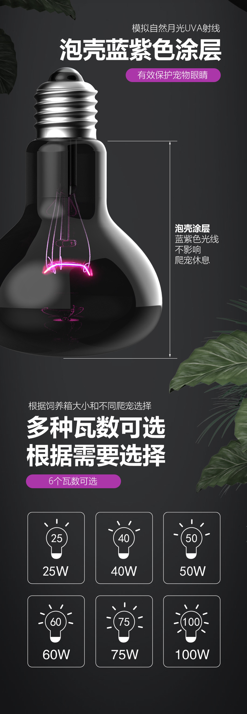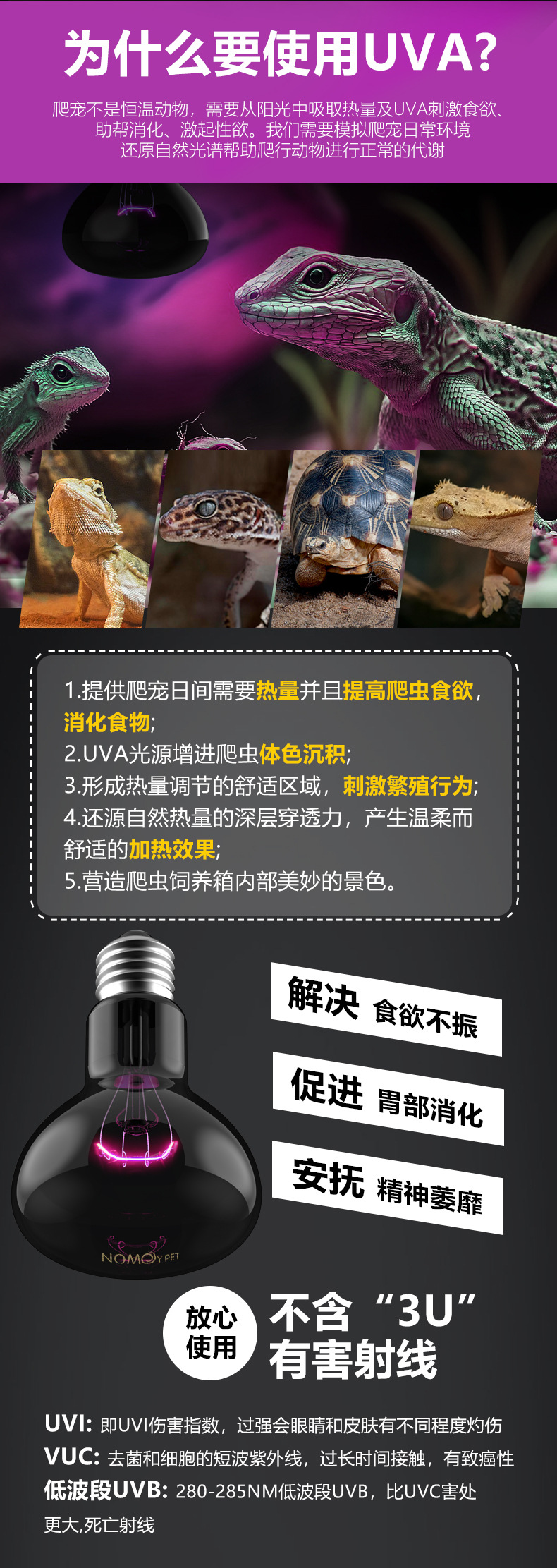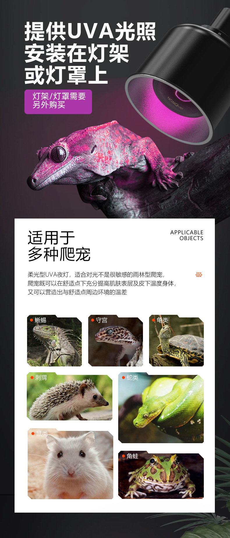 노모 110vuva 야간 조명 거북이 양육 상자 난방 램프 열 보존 램프 달빛 도마뱀 뱀 파충류 따뜻한