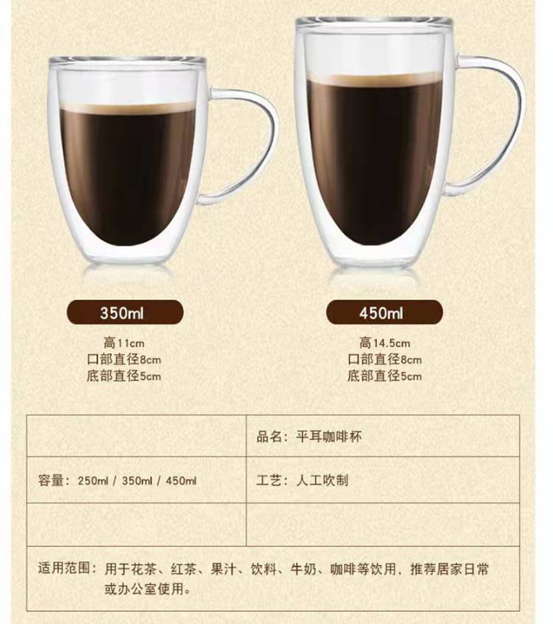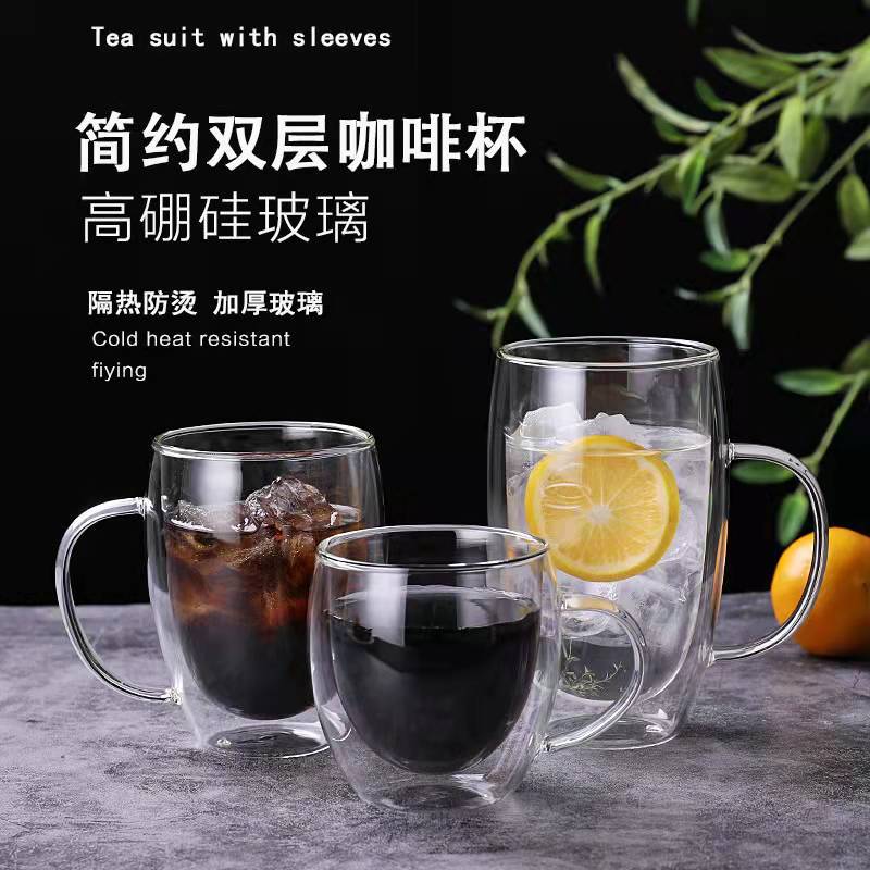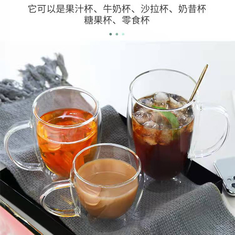 도매 고붕규산 이중층 커피잔 계란형 손잡이 물컵 고붕규산 유리 꽃차 주스컵스토어 가기