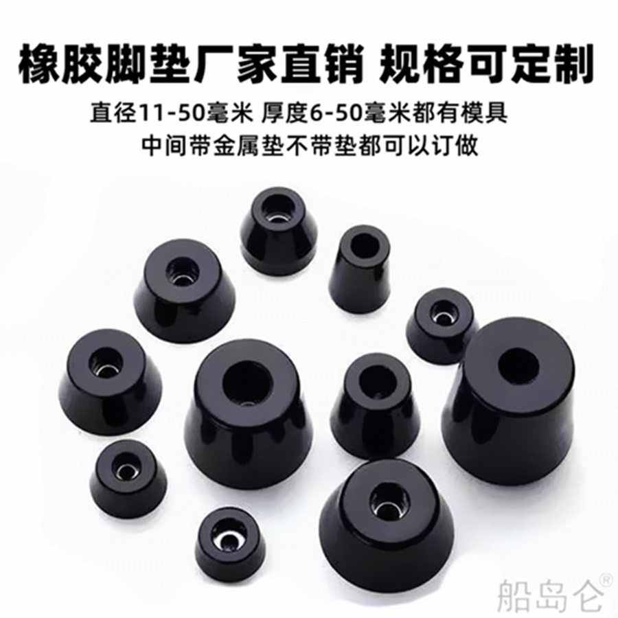 锥形橡胶脚垫 中间带有螺丝孔 孔内有带201不锈钢垫(带垫片更牢固)和不带垫片两种 也可以定制成背胶自粘型产品(背胶型适合不移动物品使用不用锁螺丝更方便快捷)