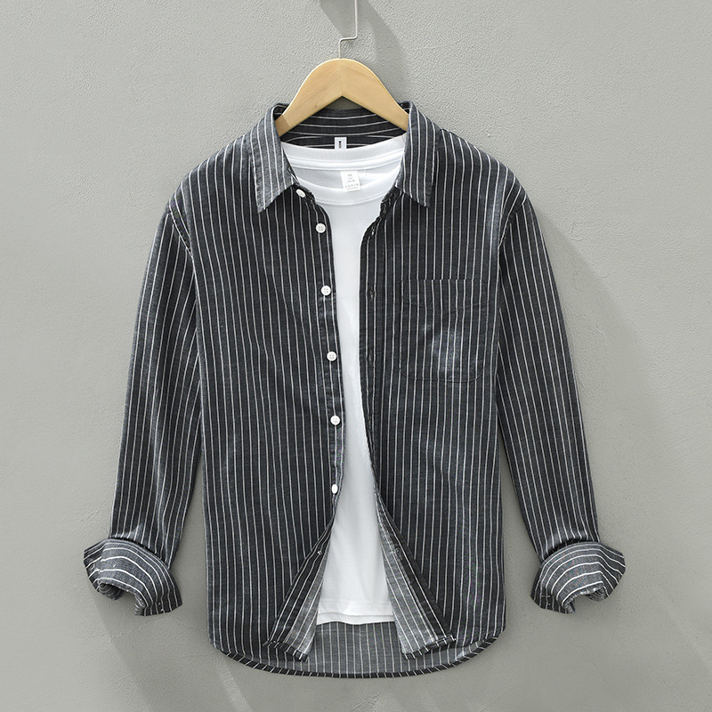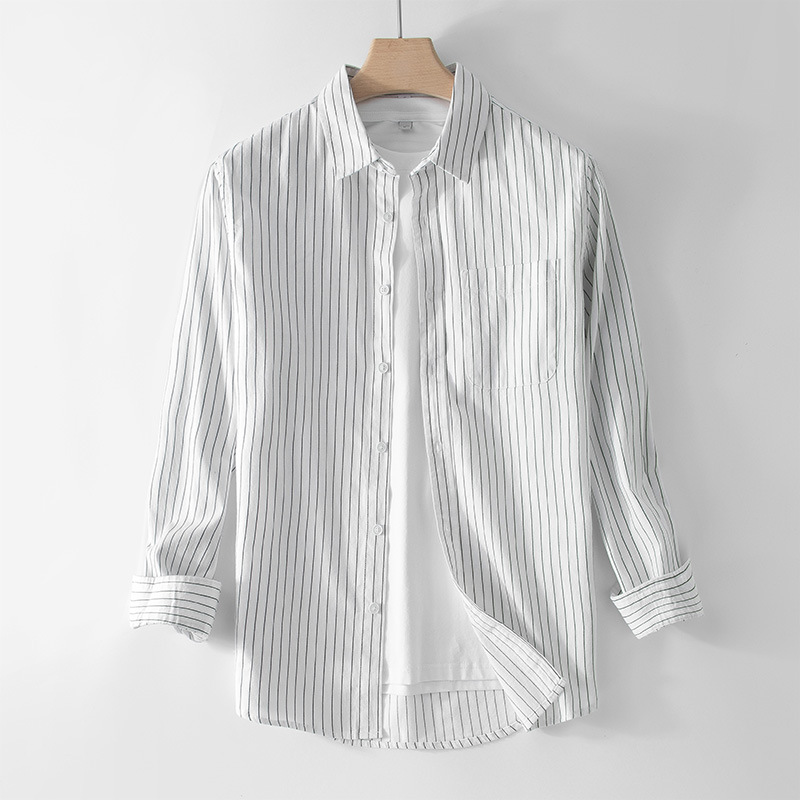 봄과 가을 긴 소매 스트라이프 셔츠 남자의 한국 유행 잘 생긴 셔츠 캐주얼 모든 매치 루즈한 재킷 남성 도매스토어 가기