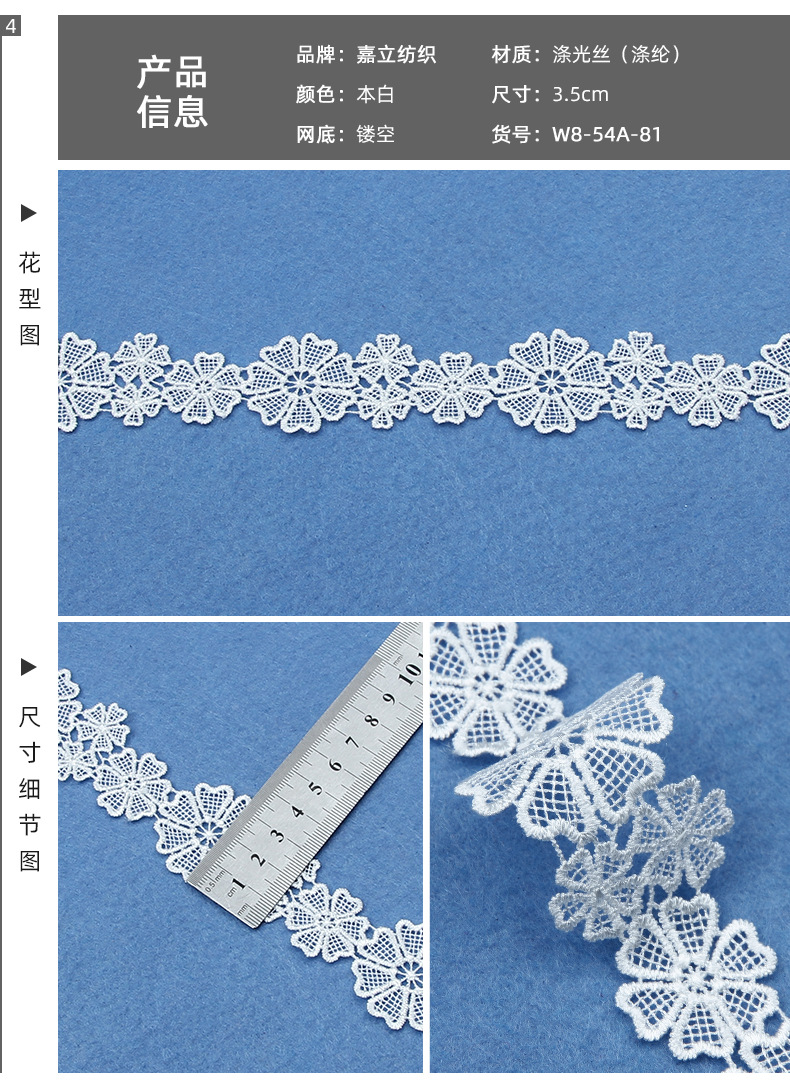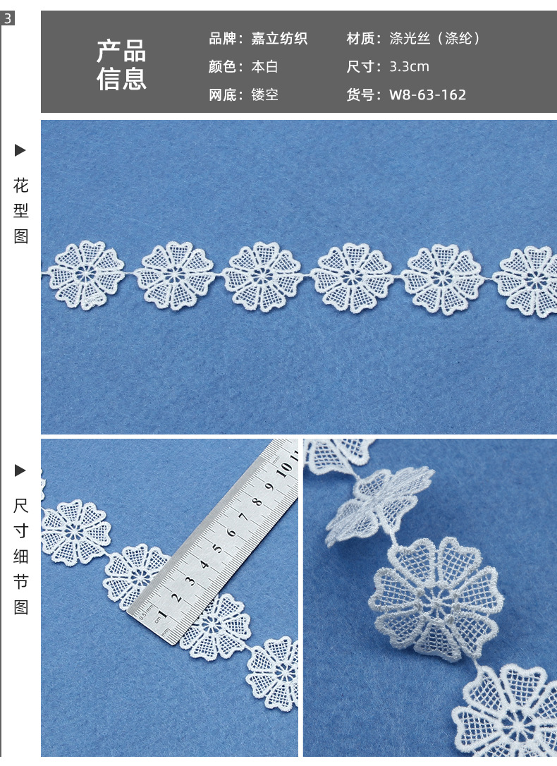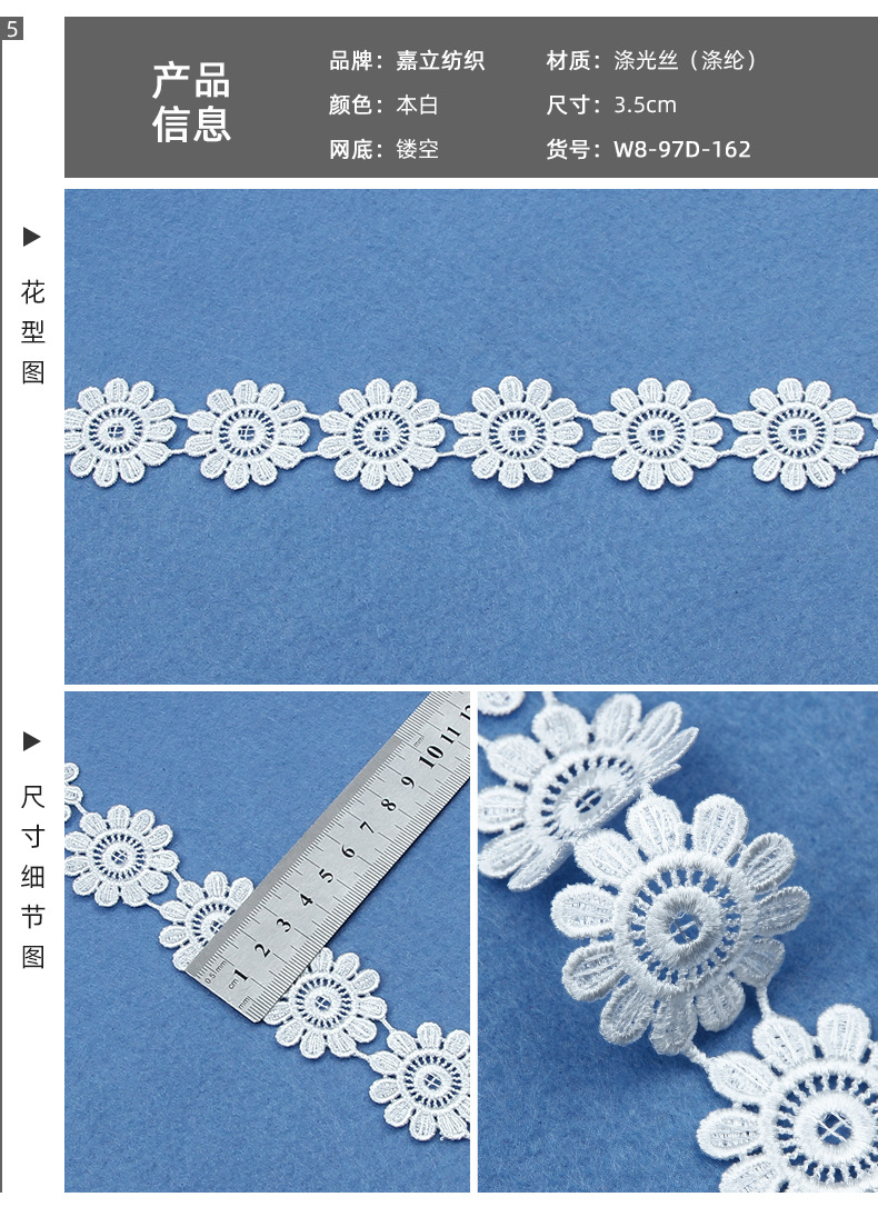 재고 폴리 에스테르 실크 자수 레이스 수용성 자수 바코드 웨딩 원피스 로리타 의류 액세서리 장식스토어 가기