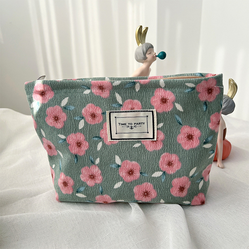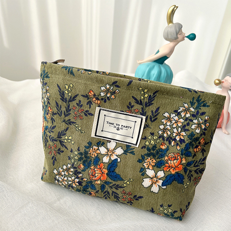 꽃 화장품 가방 빈티지 코듀로이 세면도구 가방 천 가방 보관 가방 한국식 여행 휴대용 패션 클러치 가방