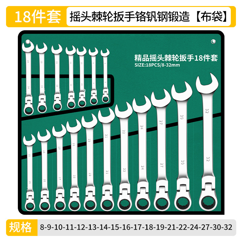 • 라이브 헤드 래칫 렌치-[천 가방에 18개 세트]