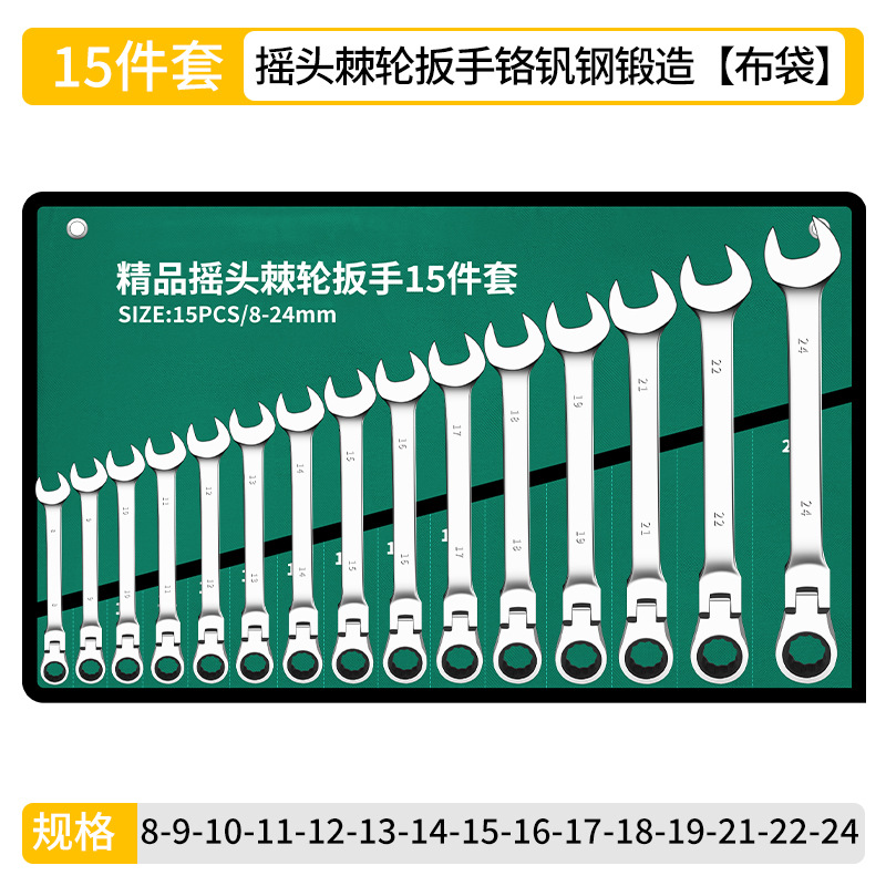 • 라이브 헤드 래칫 렌치-[천 가방 15개 세트]