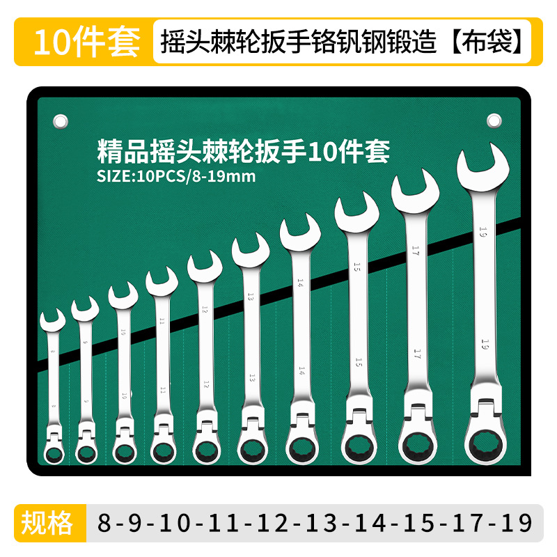 • 라이브 헤드 래칫 렌치-[천 가방에 10개 세트]