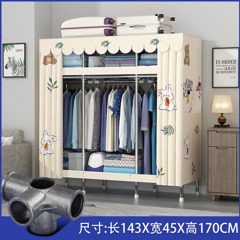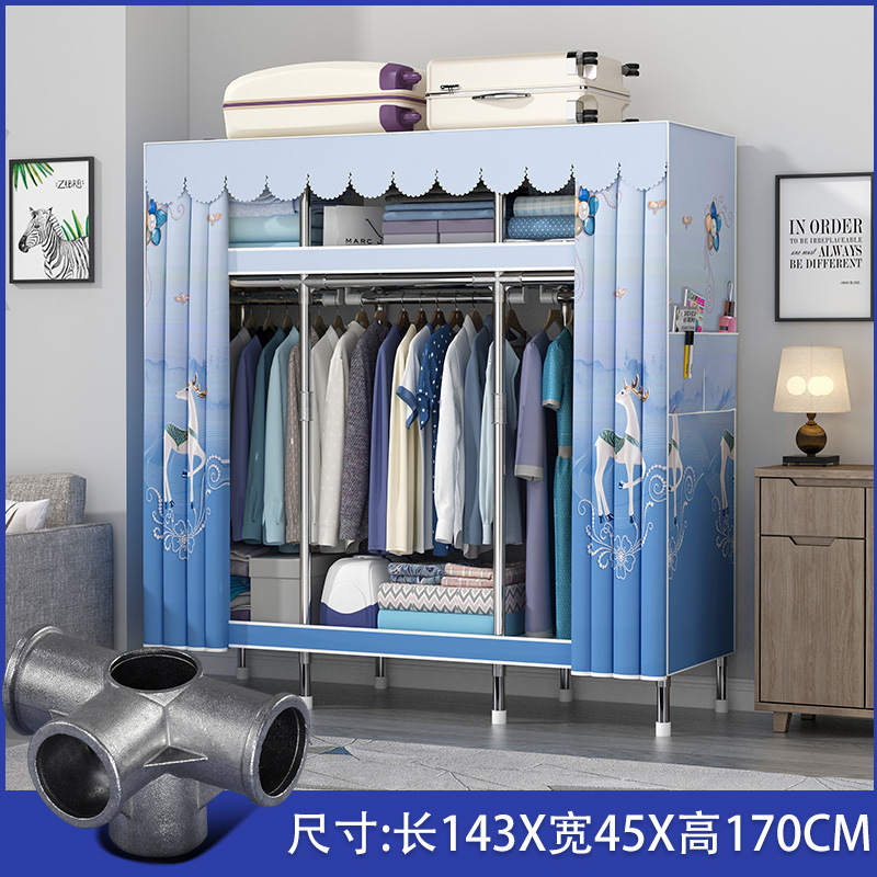 파열 간단한 옷장 두꺼운 강화 합금 인터페이스 천 옷장 간단한 경제적 인 조립 보관 옷장스토어 가기