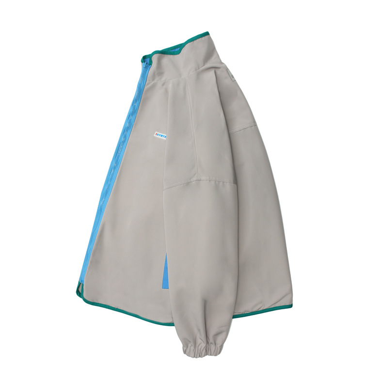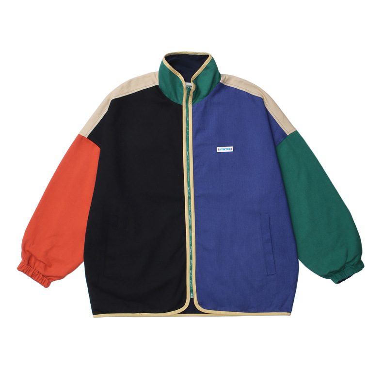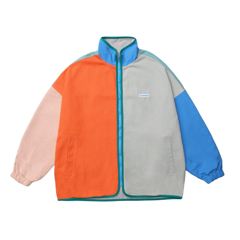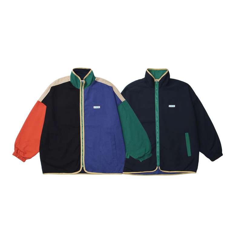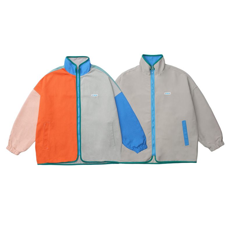 베이지에 남성복 아메리칸 스타일 트렌디 브랜드 2025 가을 신상 컬러 블록 투웨이 스탠드 칼라 재킷 남성용 코트스토어 가기