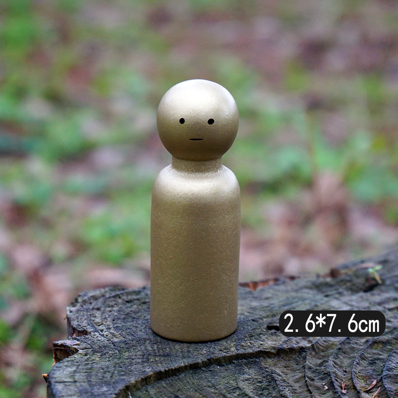 황금 실버 인형 인형 단단한 나무 빌딩 블록 장식품 작은 황금 남자 모래 테이블 작은 개체 장식품 가족 교육 교재스토어 가기