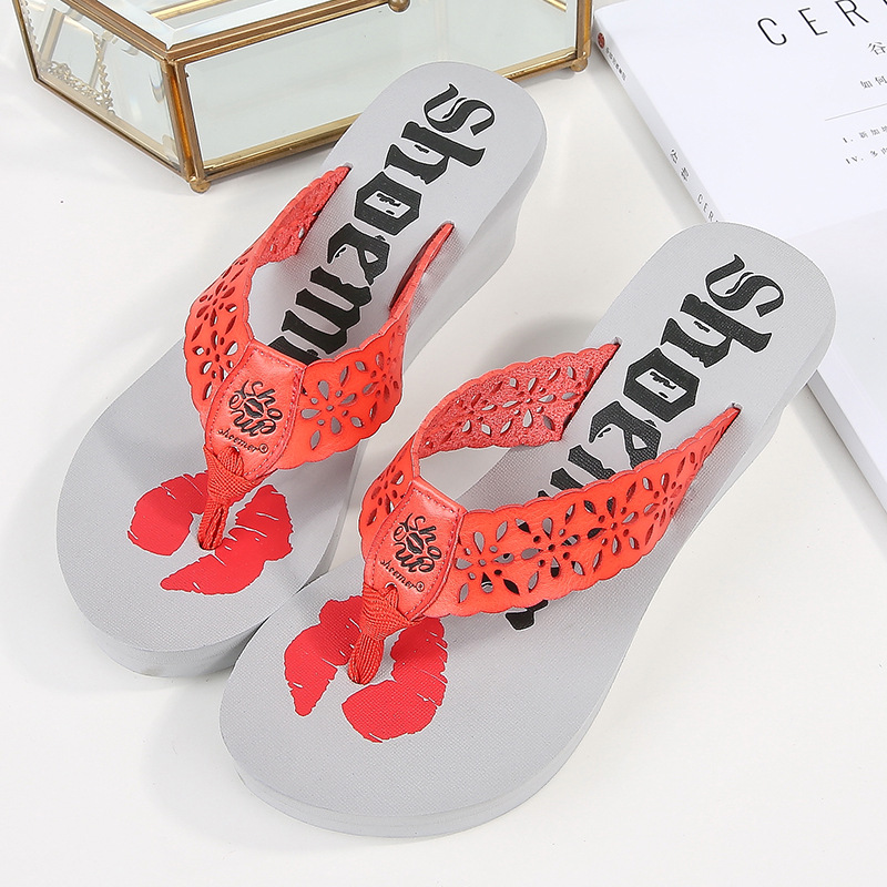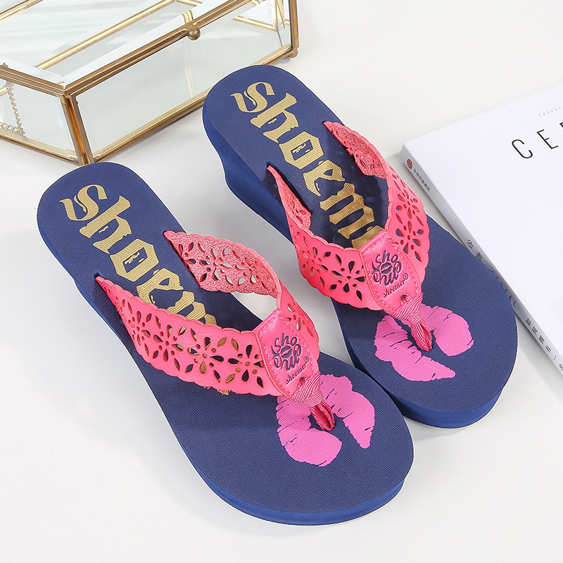 2024 새로운 고양이 뒤꿈치 슬리퍼 여성용 샌들 여성용 아웃웨어 웨지 두꺼운 바닥 비치 슈즈 플립 플립 플롭 해외 무역 명소