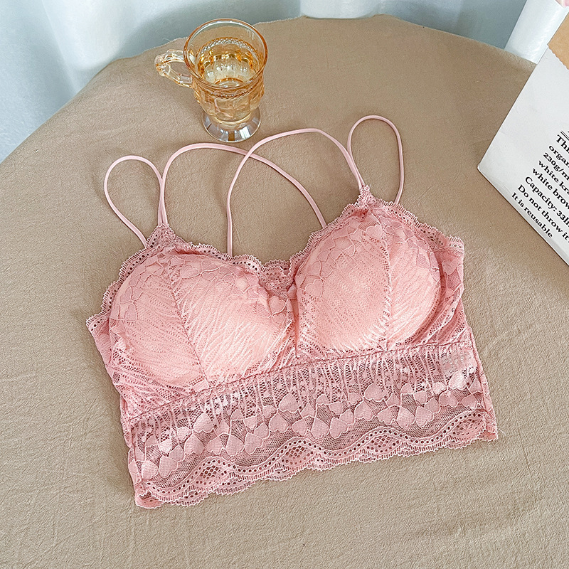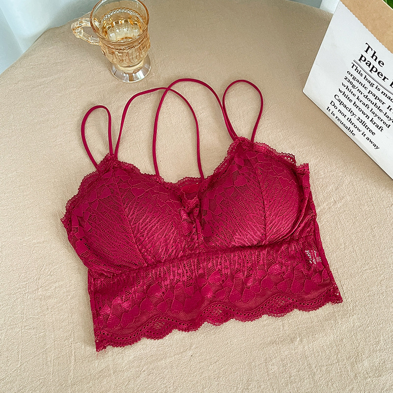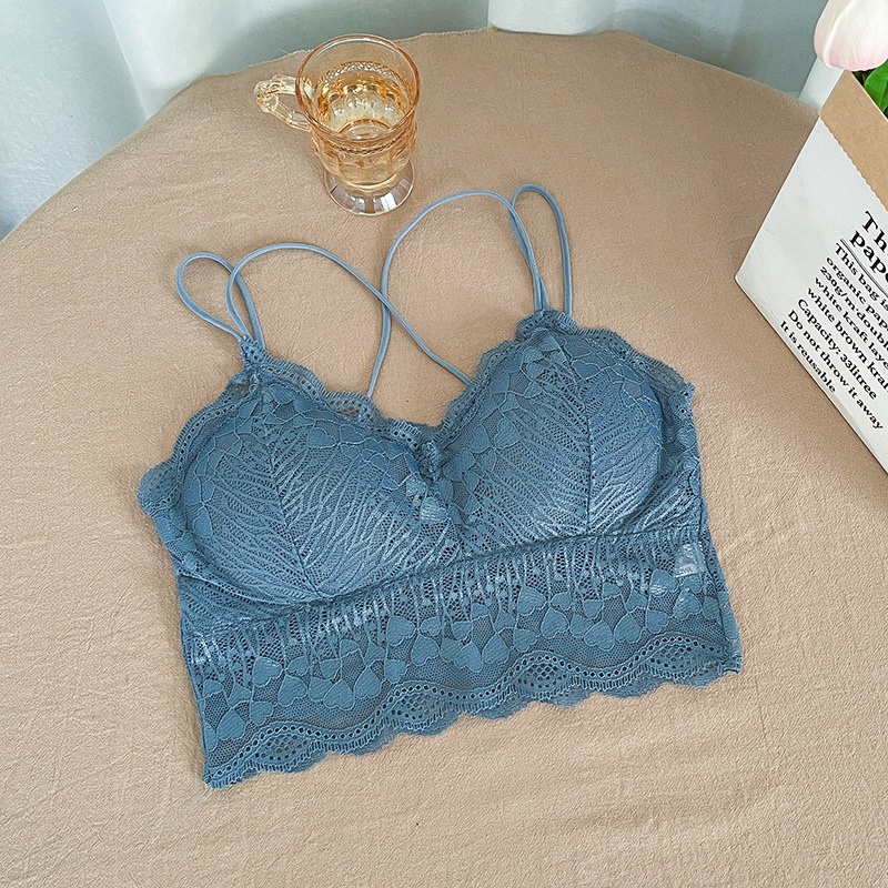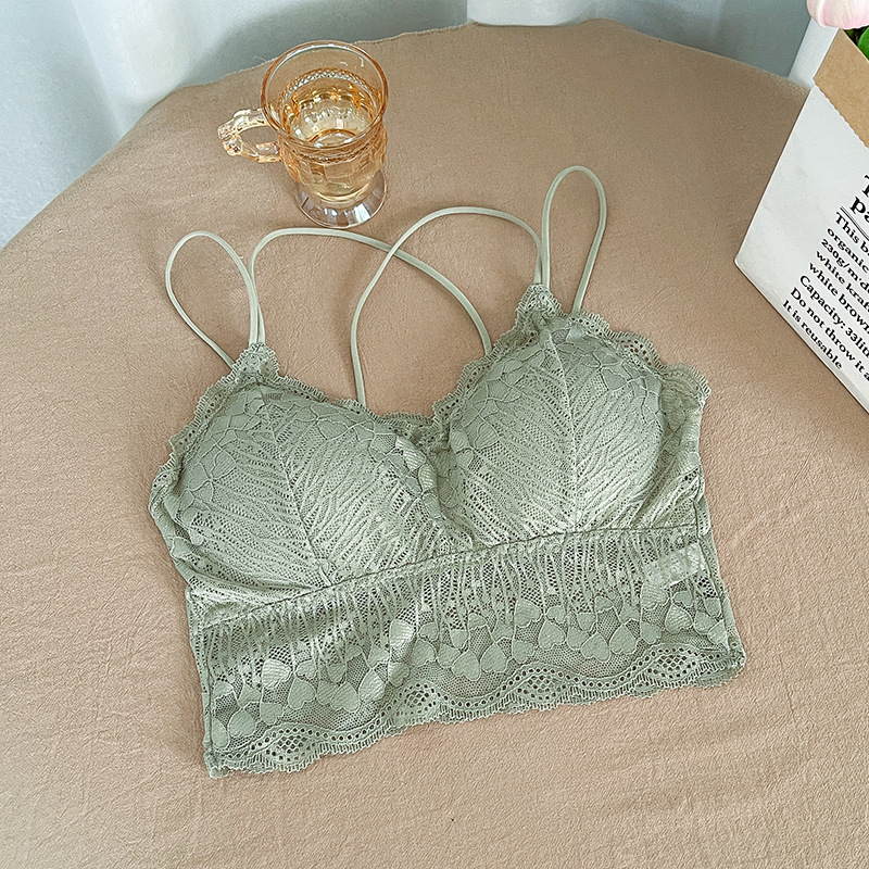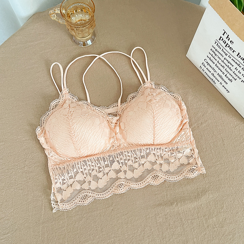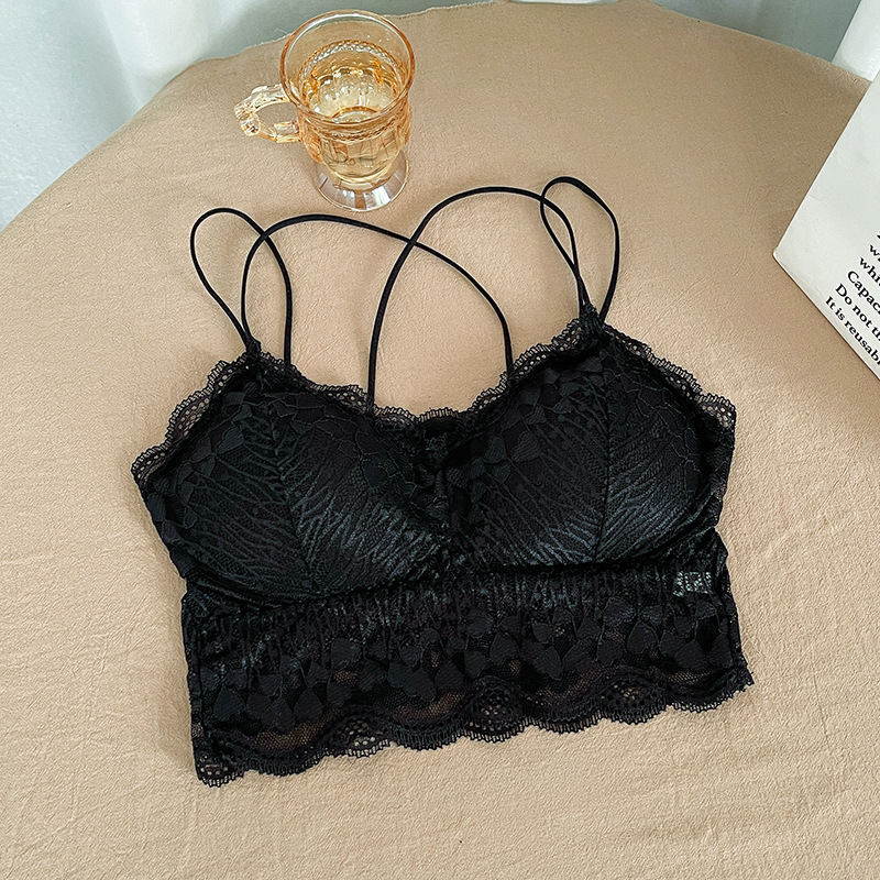2022 레이스 스파게티 스트랩 크로스백리 노와이어 슬립탑 여성용 노출방지 브라탑 가슴패드 포함스토어 가기