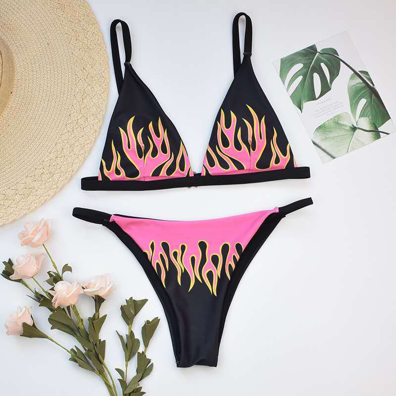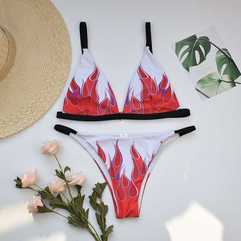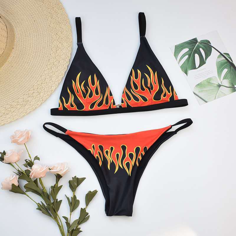 국경 간 2020 새로운 여성 스플릿 섹시한 불꽃 프린트 비키니 유럽과 미국 수영복 소원스토어 가기