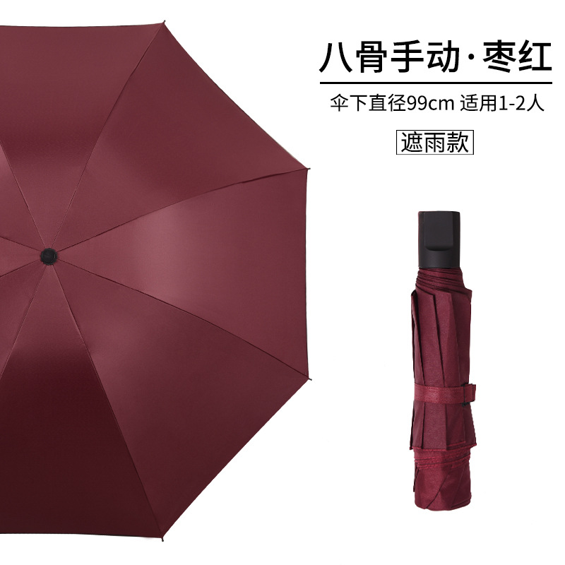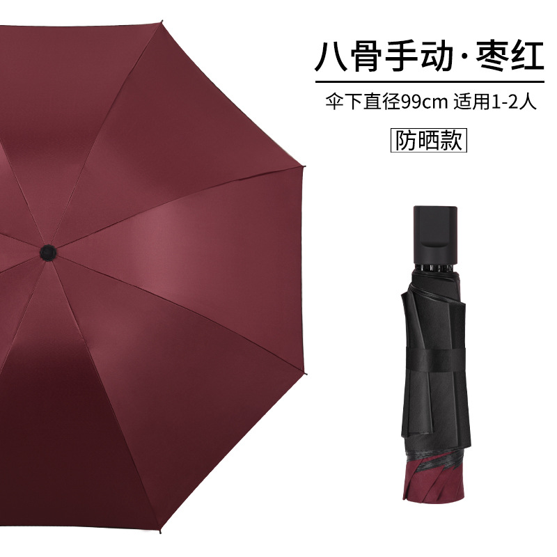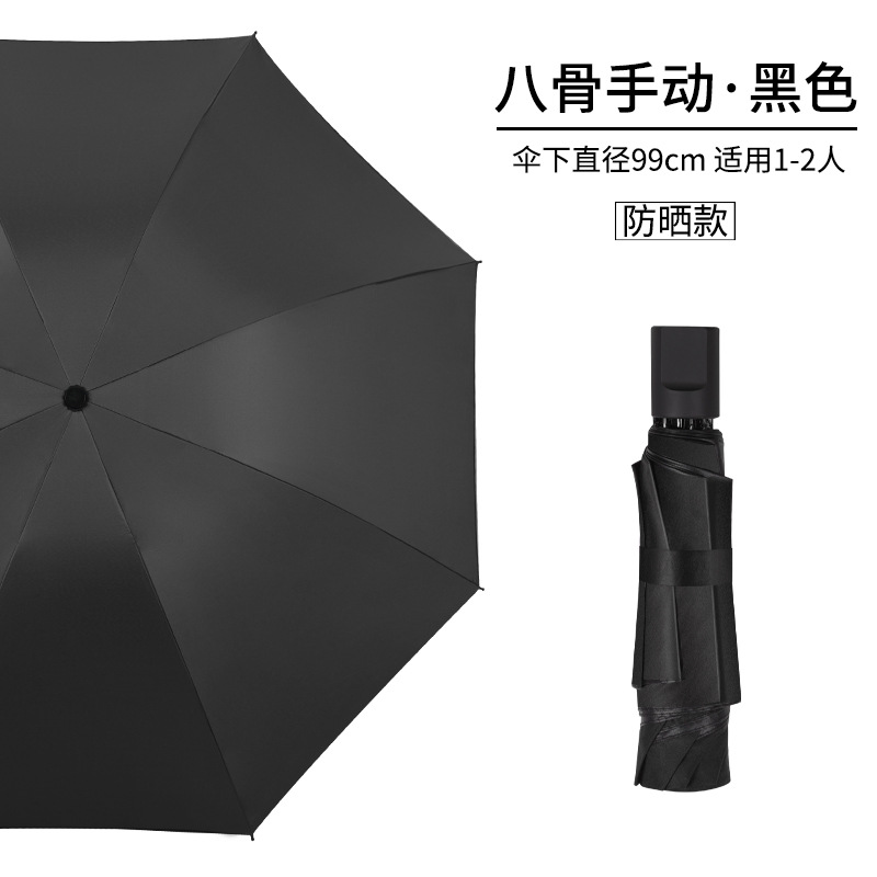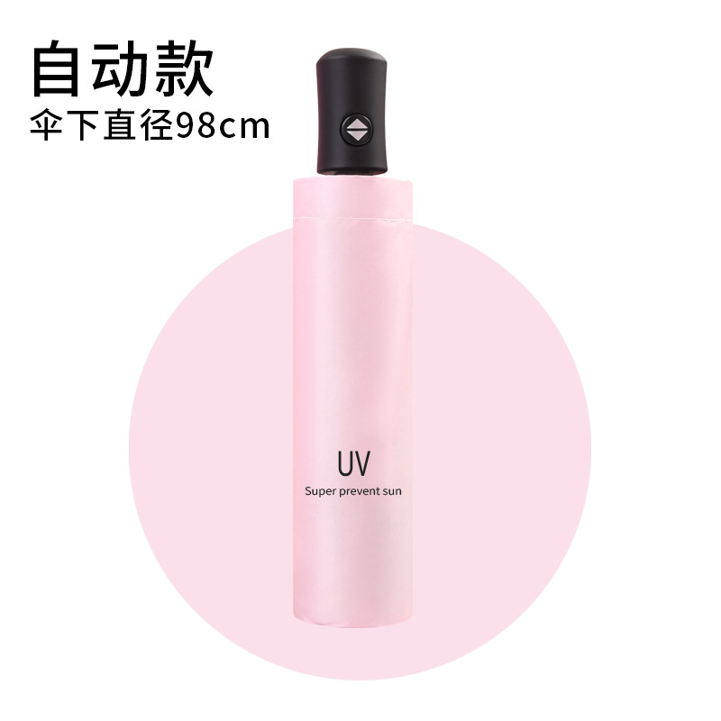 써니 우산 자동 도매 소 신선한 단색 선 스크린 블랙 고무 접이식 삼중 우산 강화 상업 우산 선물 우산