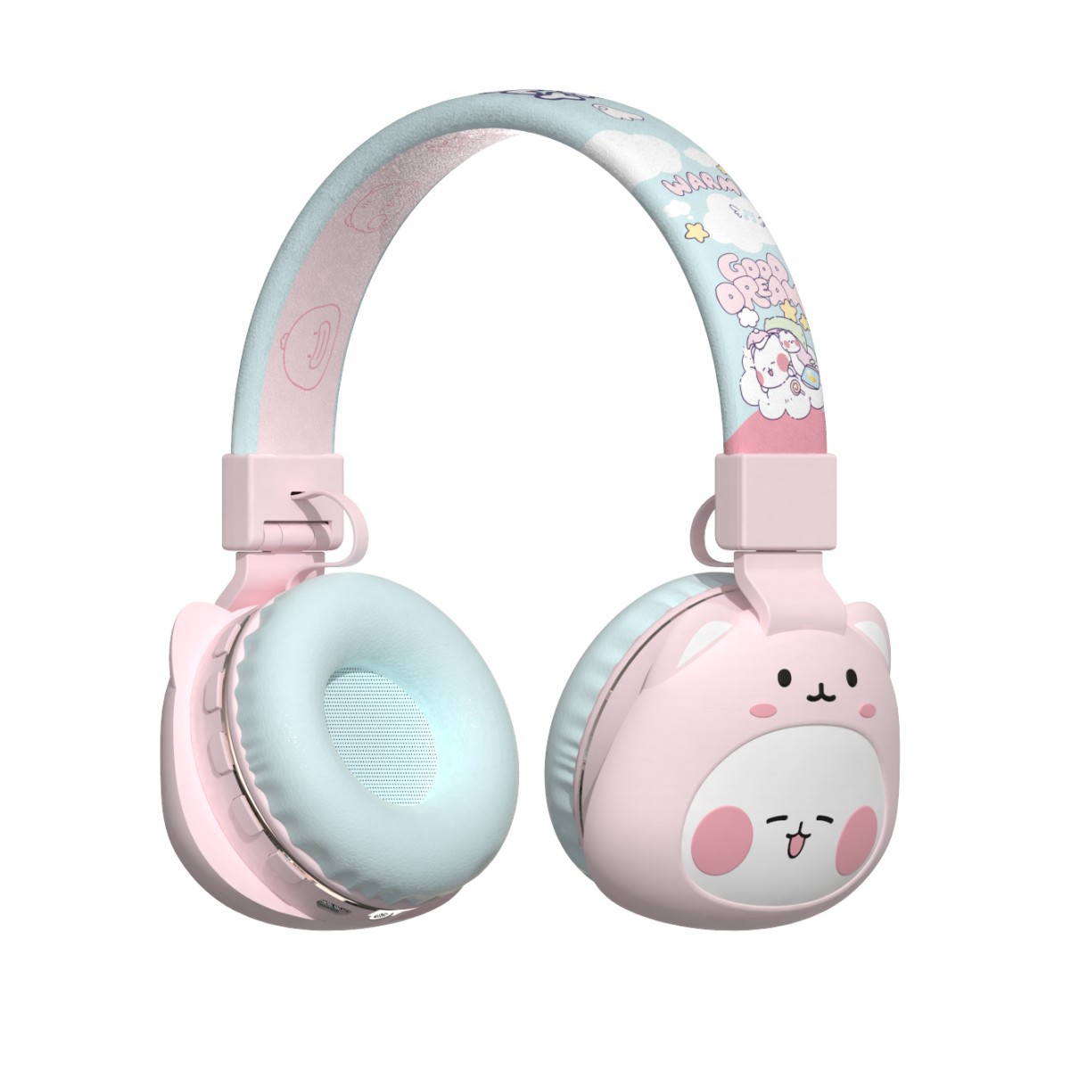 새로운 도착 귀여운 만화 어린이 헤드셋 머리 장착형 블루투스 헤드셋 무선 음악 헤드셋 85dB 데시벨 헤드셋