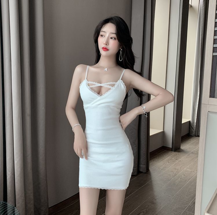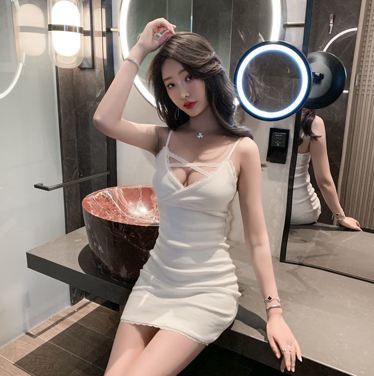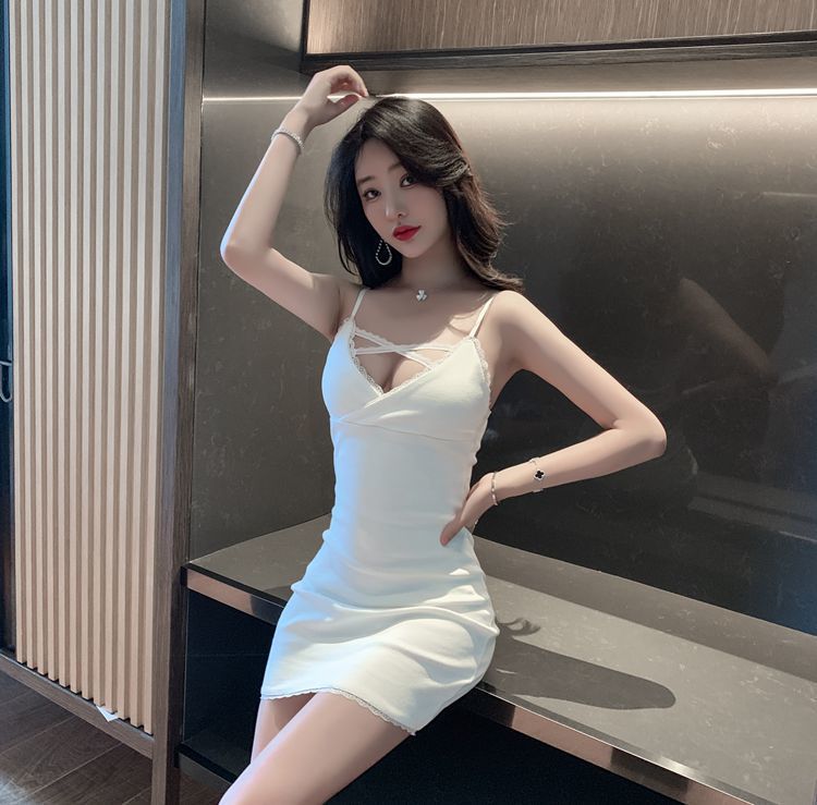 원피스 나이트 클럽 새로운 가을 인테리어 착용 섹시한 흰색 엉덩이 스커트 꽉 프랑스 스커트 우아한 스트랩 스커트