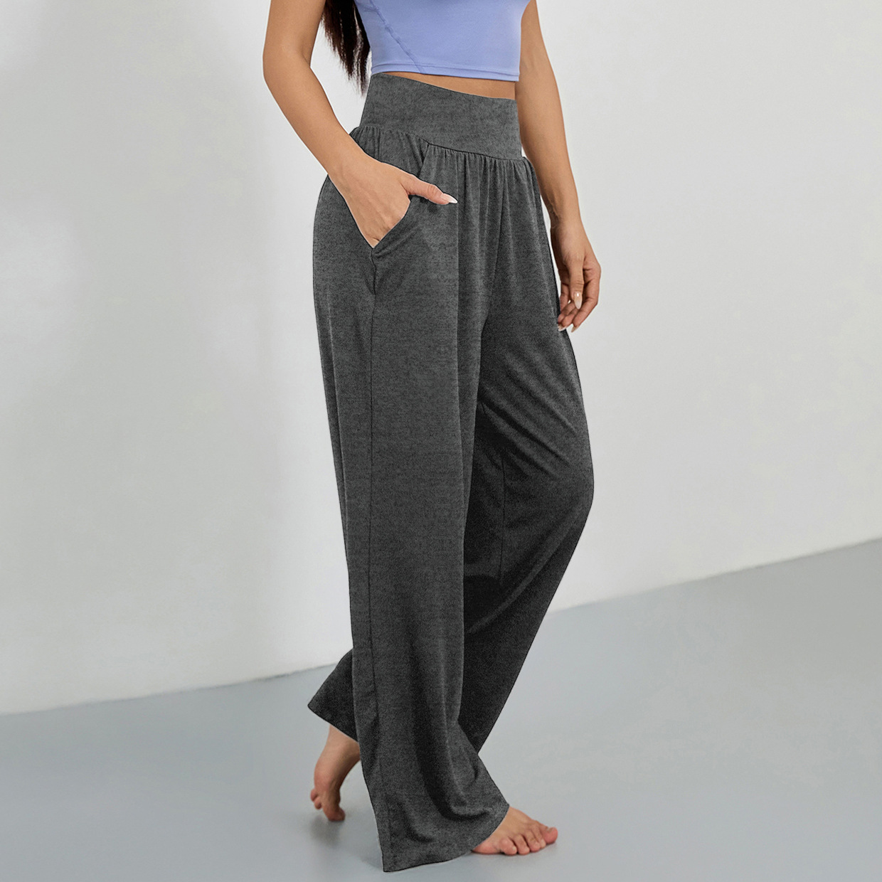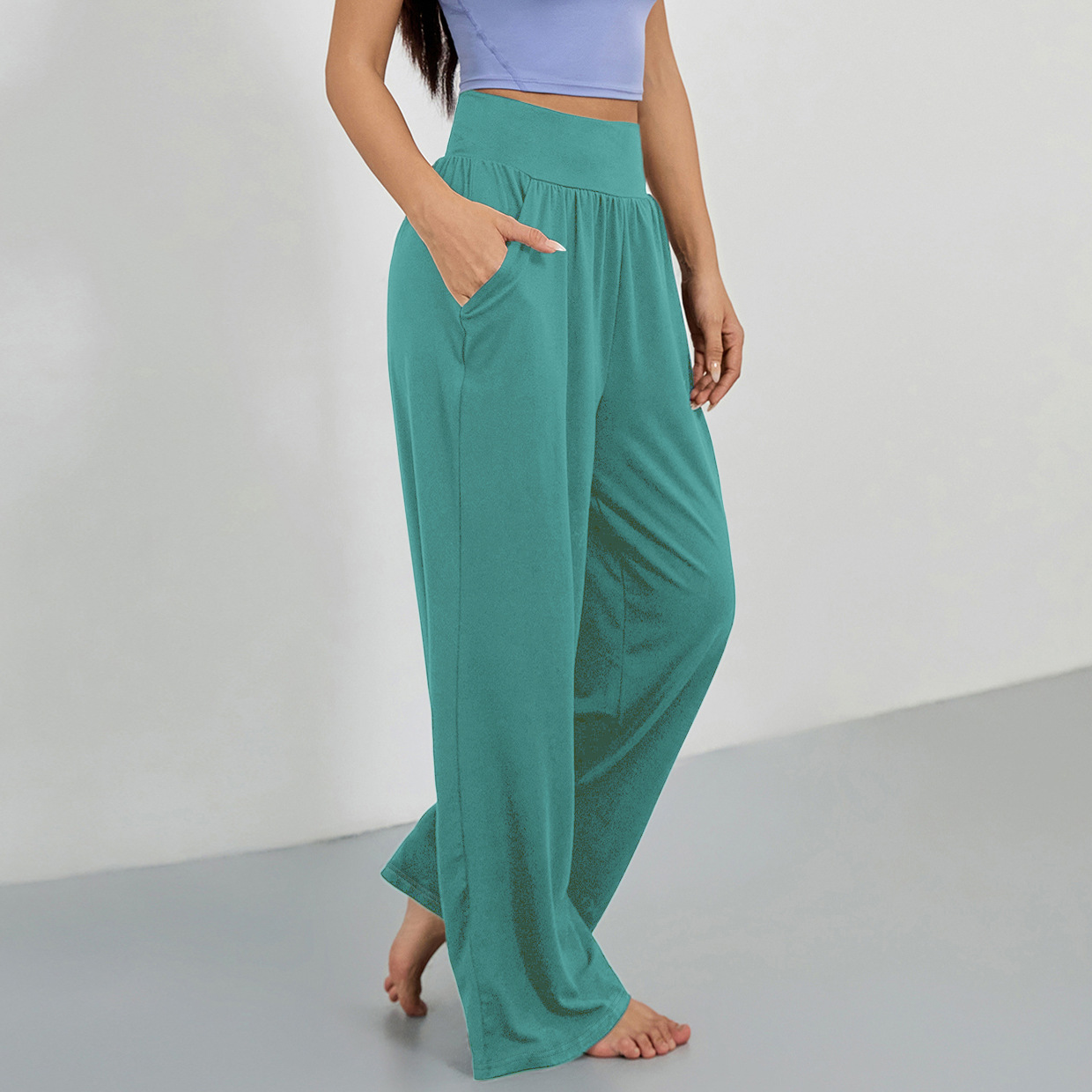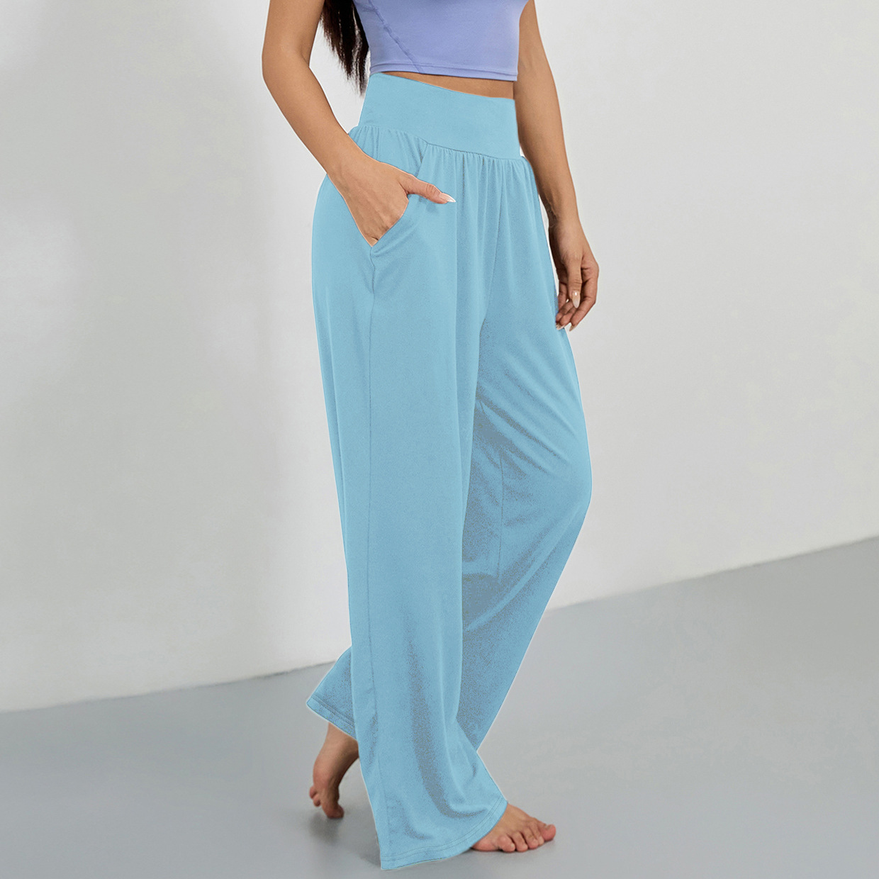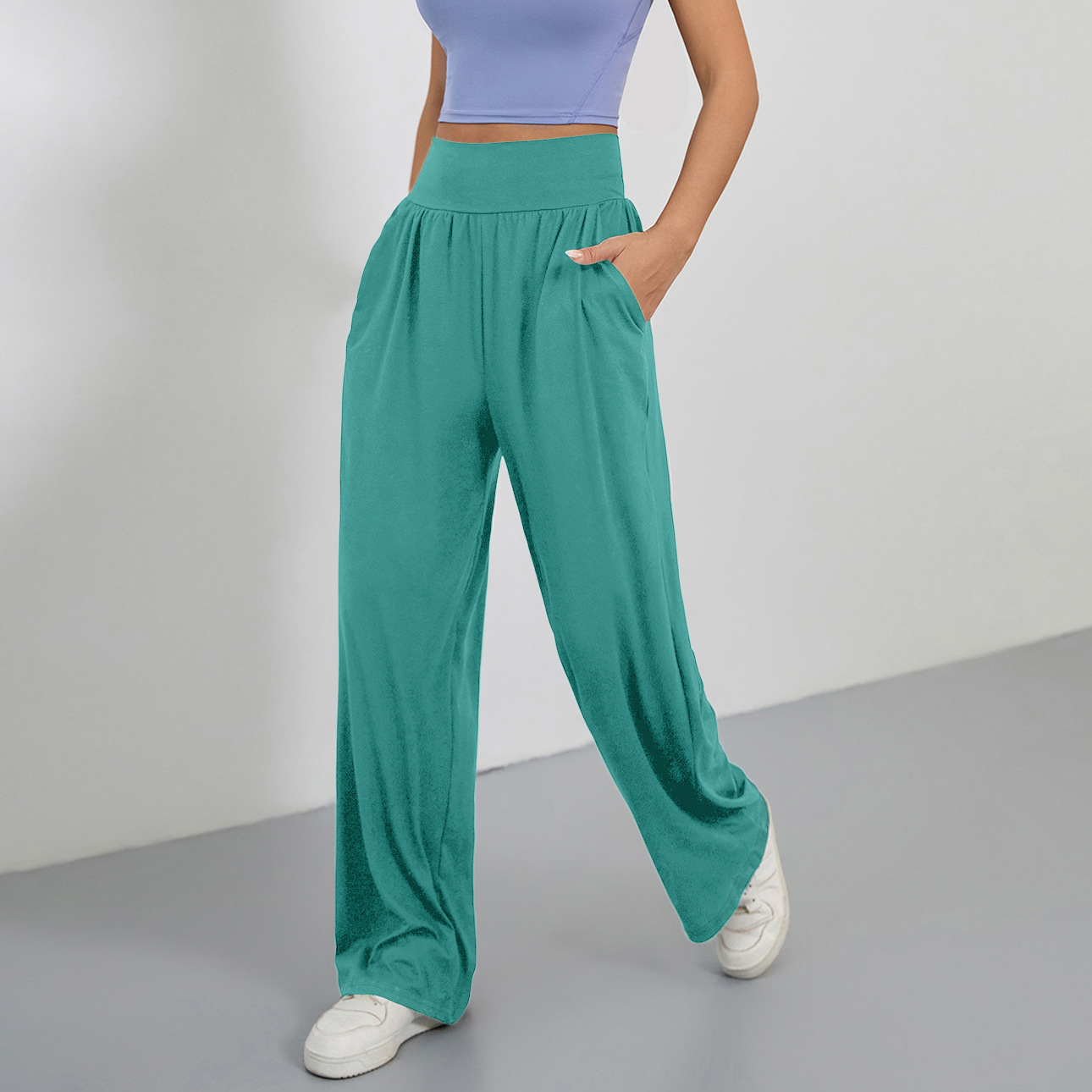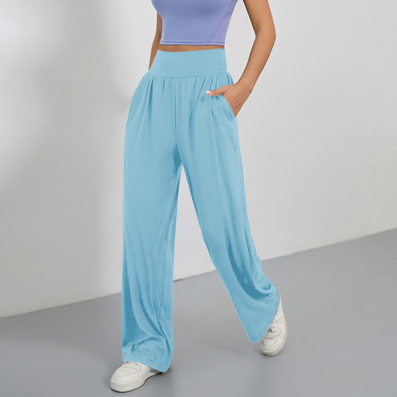 4031 # 대외 무역 크로스 보더 스포츠 느슨한 스트레이트 멀티 컬러 요가 멀티 컬러 러닝 레저 슬림 스포츠 와이드 레그 팬츠