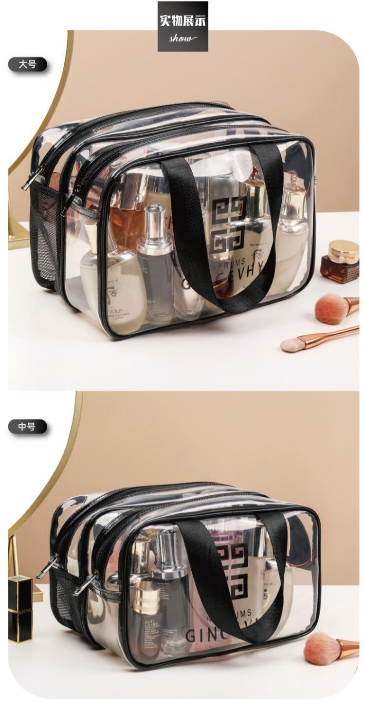 더블 레이어 대용량 건식 및 습식 분리 세면 용품 가방 인터넷 연예인 휴대용 PVC 투명 화장품 가방 여행 휴대용 보관 가방스토어 가기