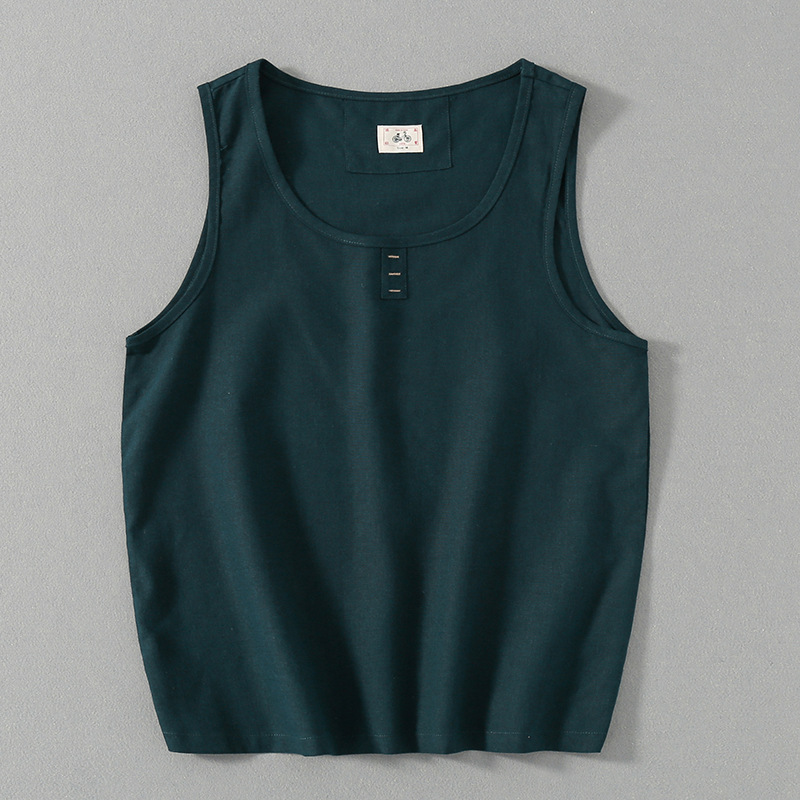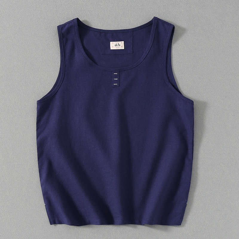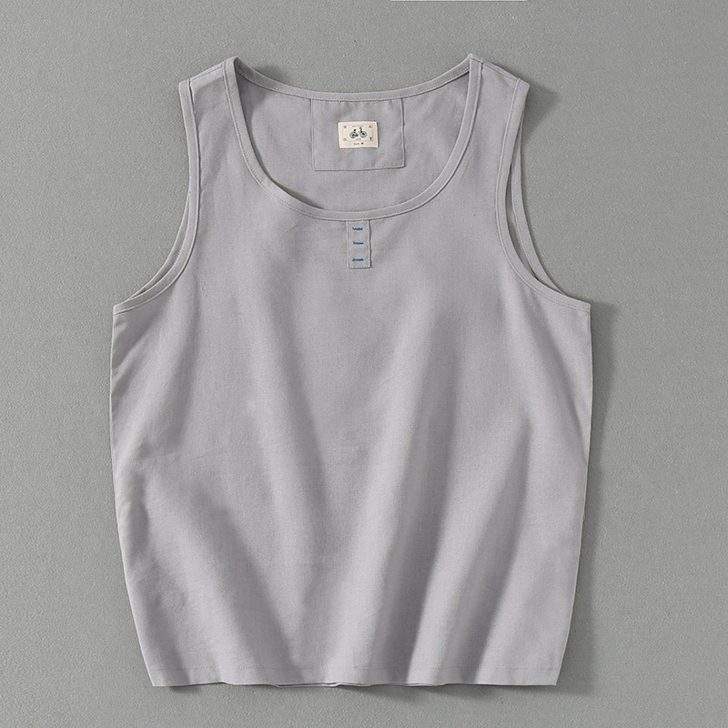 중국 스타일 빈티지 민소매 조끼 면 린넨 남성 여름 캐주얼 느슨한 모든 매치 라운드 넥 린넨 조끼 전국 패션스토어 가기